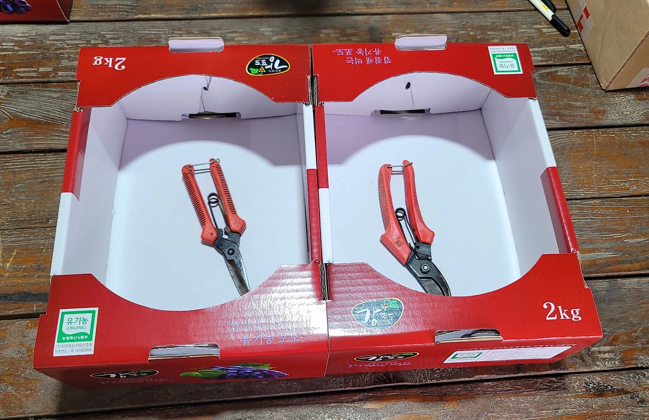 2시간 동안 2kg짜리 상자에 포도를 채워가는 데 2만 원, '1kg나 채울 수 있을까?' 하는 생각에 한숨이 푹 나왔다. 평택에서 완주까지 가는 시간, 경비를 뽑으려면 한숨만 쉬고 있을 겨를이 없었다. 정신을 차리고 눈앞에 보이는 포도송이에 다가갔다.