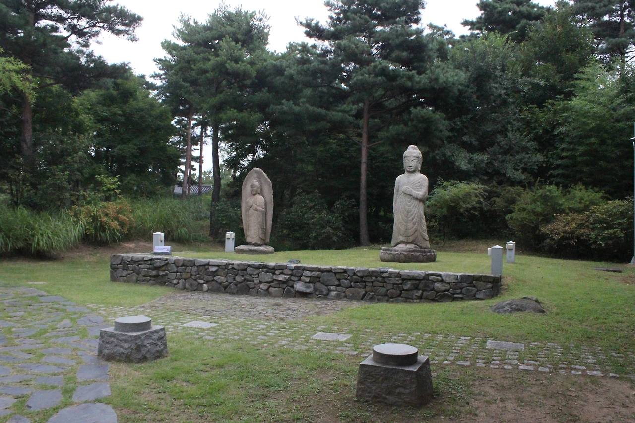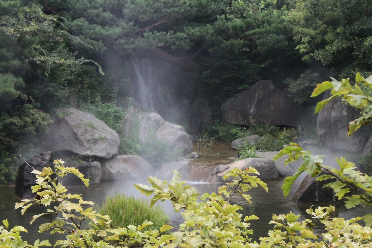 각지 절터에서 있던 아름다운 탑들을 바라보니 오랜 세월이 이 공간으로 옮겨져서 이 공간이 시간여행을 하는 듯한 기분이 들었다. 안쪽으로 들어가니 ‘미르 폭포’라는 인공폭포가 보인다. 바위 뒤쪽에서 스모그까지 연출되며 나름 자연의 공간에 와 있는듯한 느낌을 준다. 하지만 어디서 나타났는지 달려드는 모기떼에 이곳이 청정자연지역이 아니란 듯 꿈을 깨게 한다.