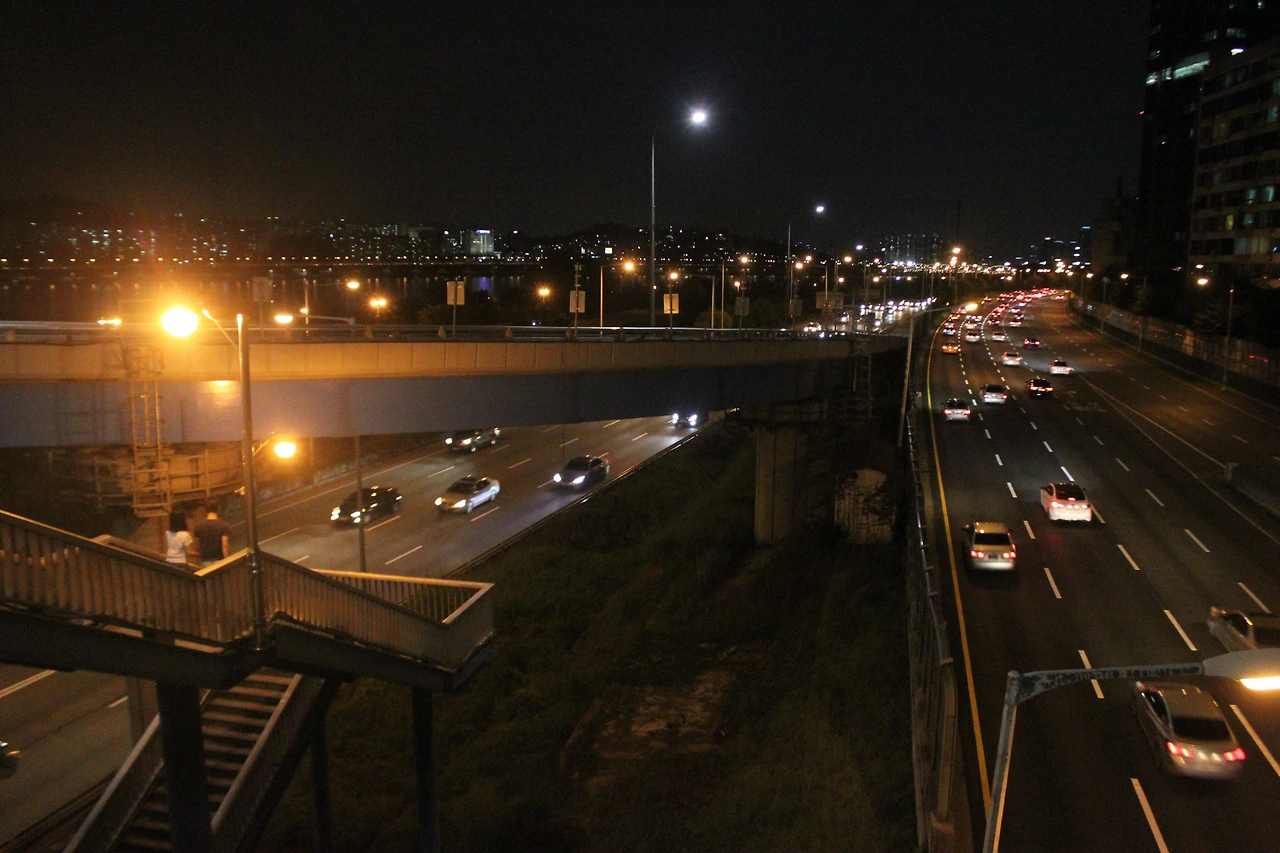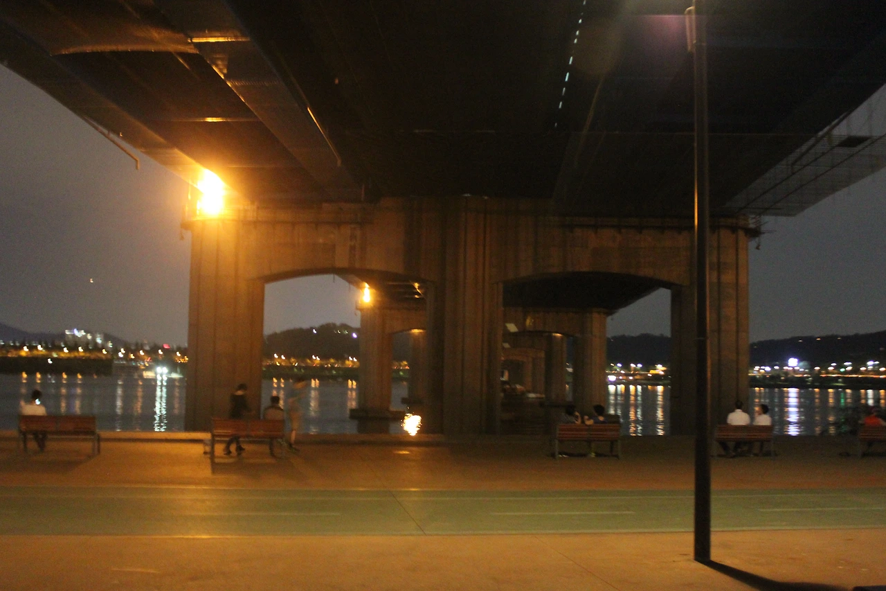 작은 맛집들이 가득한 ‘이촌 시장‘을 지나 골목골목을 지나 대로변으로 나온다. 주말이라 간편한 옷차림에 나온 가족들이 드문드문 보인다. 한강대교를 올라 다시 내려가면 한강변이 나온다. 아직 그렇게 많이 시원하지 않아서 걷는 사람들이 많이 나오지 않은 듯하다.