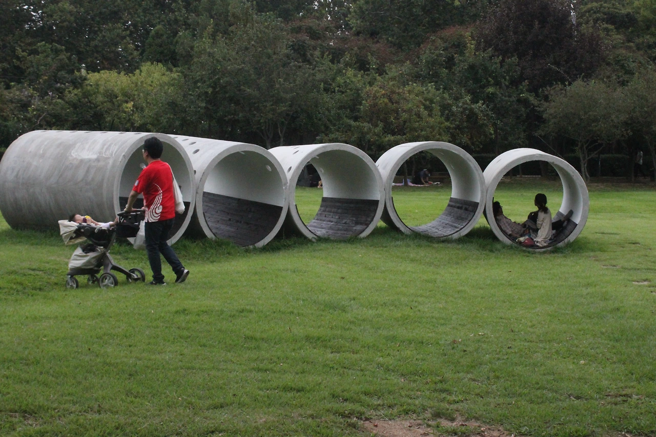 안쪽 공원 너머에는 넓은 풀밭이 있는데 여기에 미술 조형물이 전시 중이었다. 벽 쪽에 용산가족공원의 벽 넘어 확장을 염원하는 의미를 가진 듯했는데 그 염원이 그대로 느끼고 전달되어 아름다웠다.