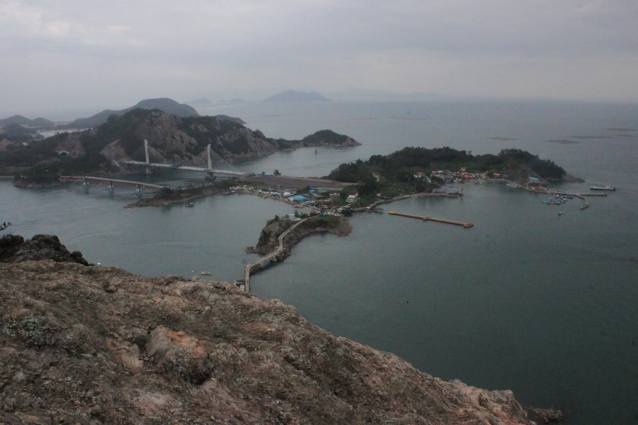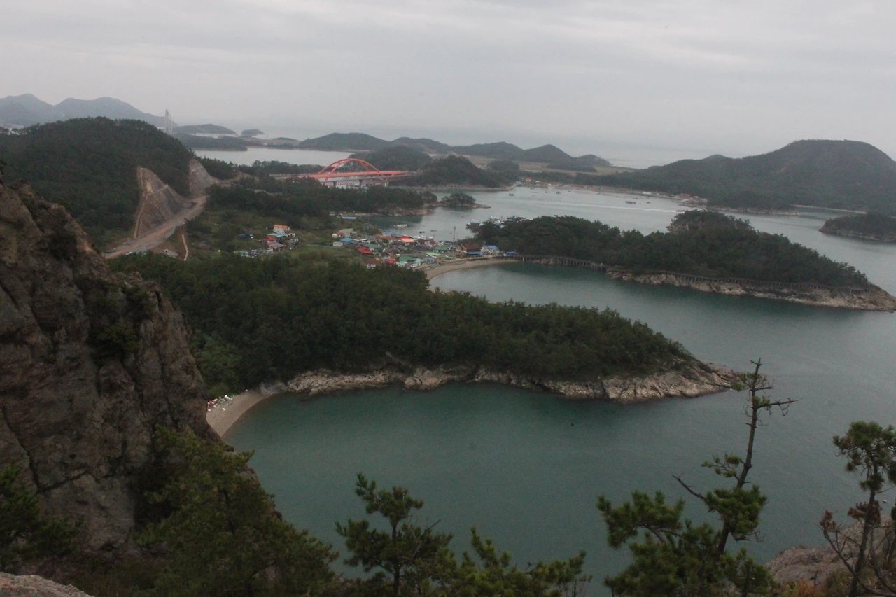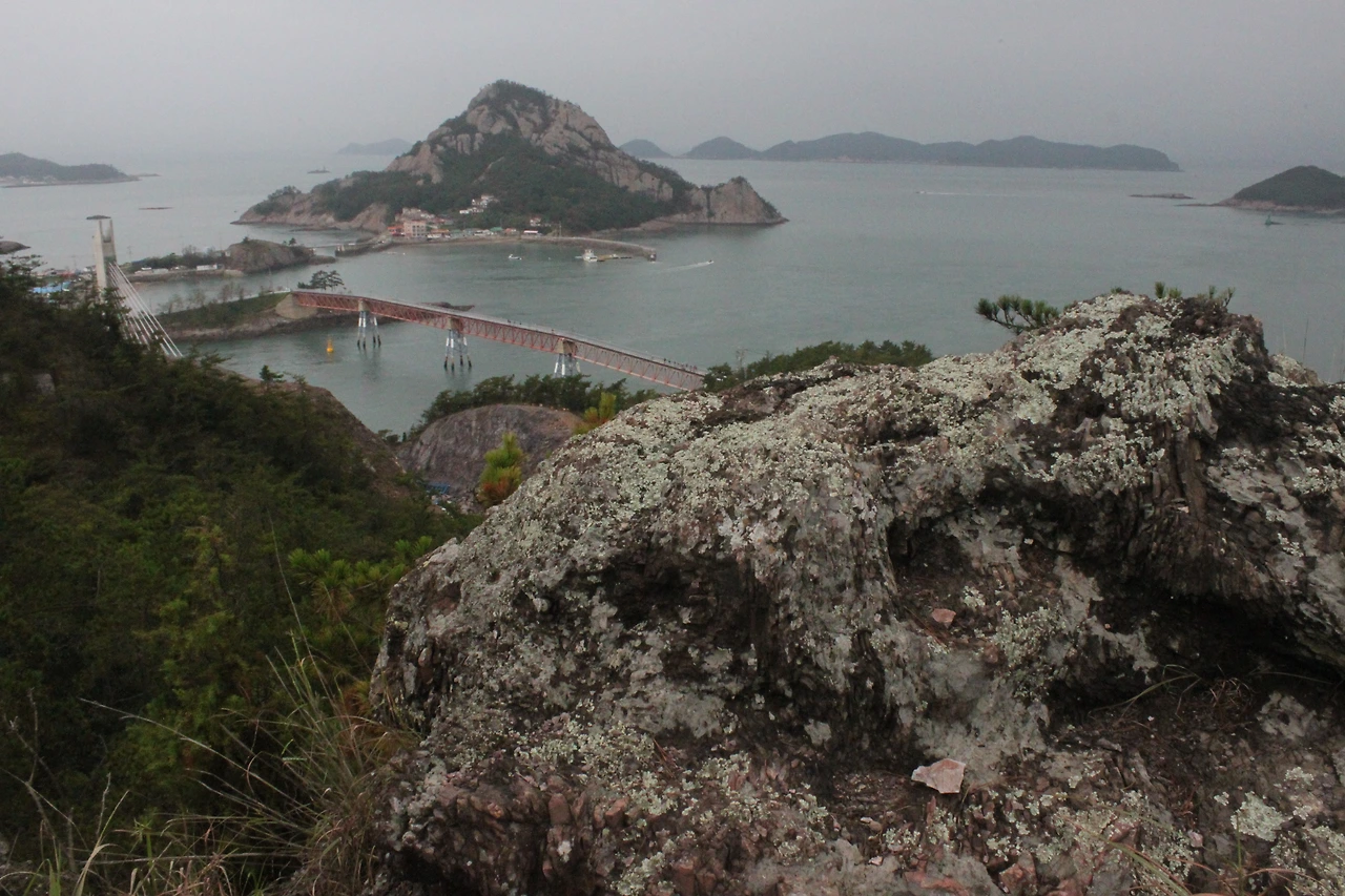 산은 111미터, 높지는 않지만 섬에서는 최고의 전망대 역할을 해줄 것이다. 그 봉우리로 오르는 길은 한참 도로공사 중이었다. 그 옆길로 선유봉 바위로 된 산을 오른다. 산에 오르니 360도 섬들의 모습이 장관을 이룬다.