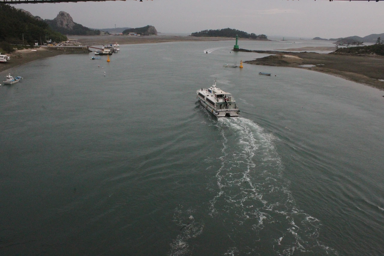 선유도'에선 '망주봉'을 바라보며 짚라인을 타는 모습을 보다가 돌아서 무녀도 초입으로 회기 한다.