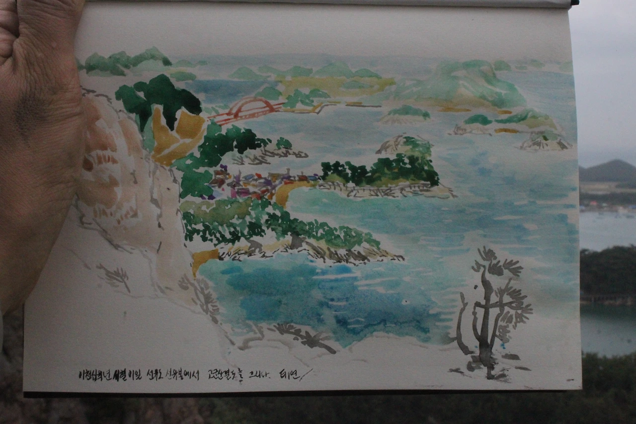 그 바다를 바라보며 식사를 하고, 그 자리에서 새로운 스케치북에 점을 찍어 넣는다. 30여분 서둘러 섬들을 박아낸 후에 먼저 보낸 일행을 따라나선다.