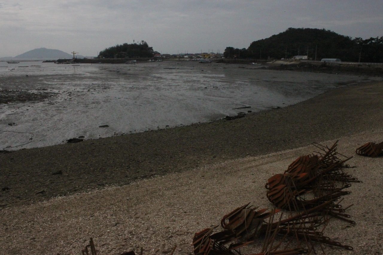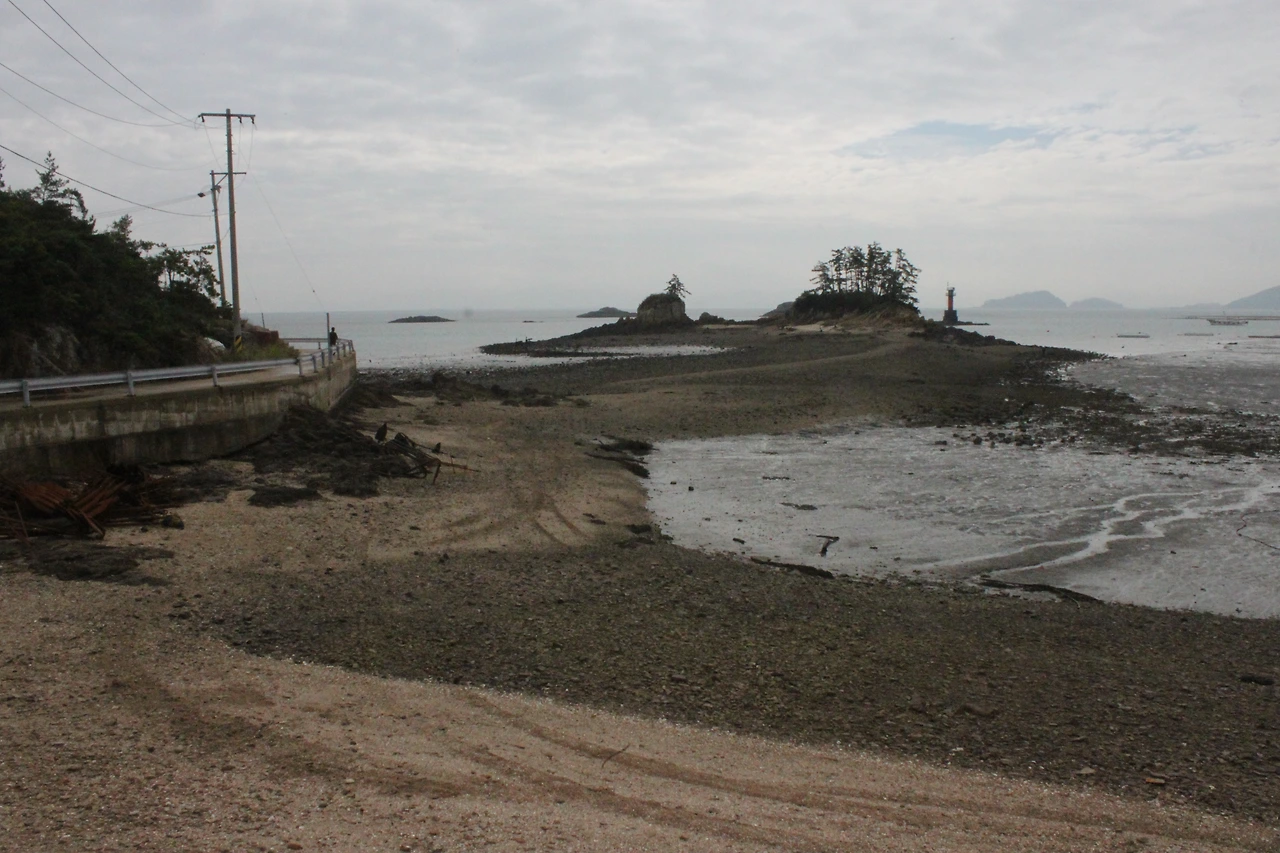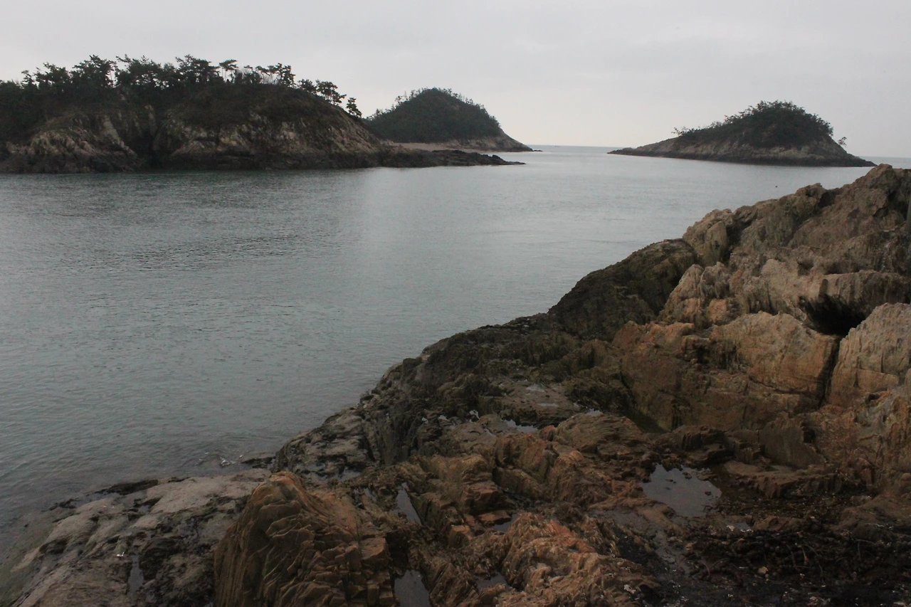 새만금 방조제를 지나 '무녀도'에 다다르니 바다에 물이 빠진 상태로 '장구도'와'주삼섬''앞삼섬' 세 무인도가 운치 있게 바다를 장식하고, 주상절리로 이루어진 바위를 돌아 '벌구미해변'을 통해 어촌마을을 걷는다.