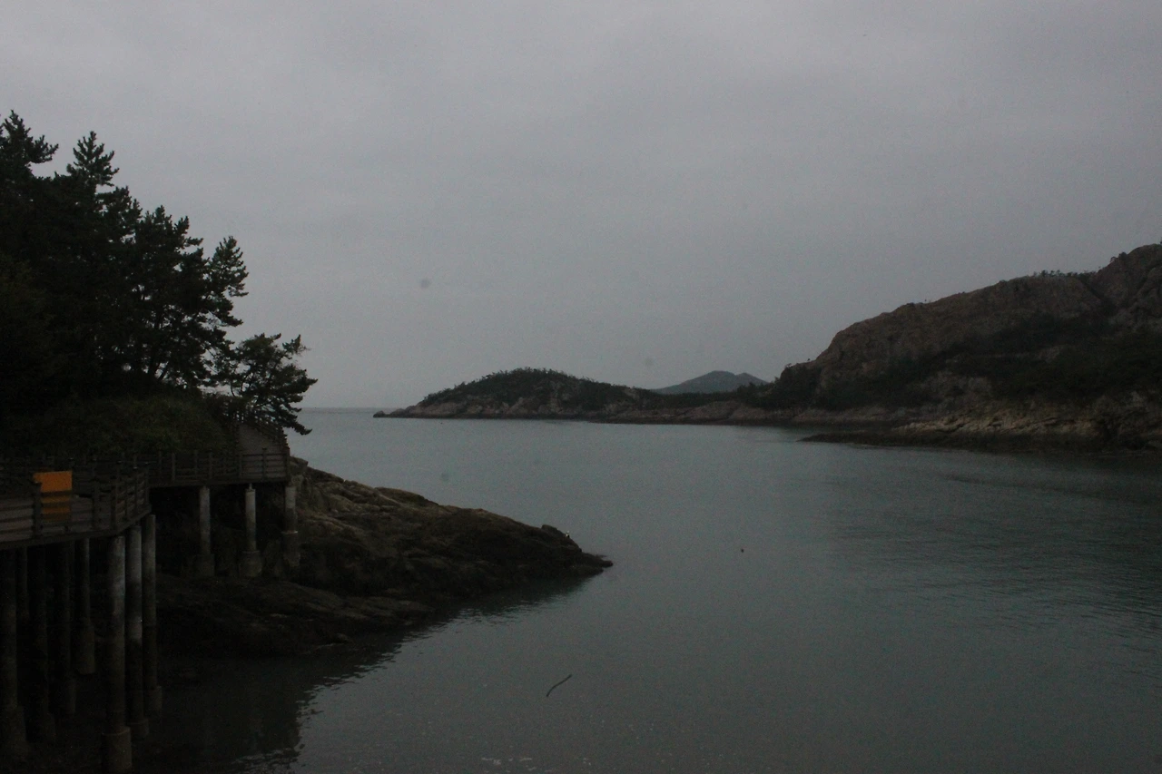 건너자마자 왼편으로 바다 쪽 데크길을 걷는다. 아름다운 바다와 섬의 자태가 이국적인 느낌을 준다. 그림을 그리고 싶지만 시간이 많지 않아 다른 곳을 물색하기로 한다. '선유봉'으로 오르는 길을 찾는다.