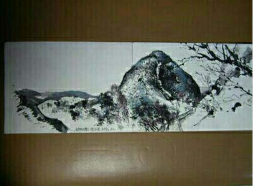 먹과 물감을 정비해서 왔더니 색의 제한이 덜한다. 아름다운 바위의 모습을 먹으로 단번에 그린 다음 색으로 보이는 형형색색 나무들을 색으로 구분해낸다.
