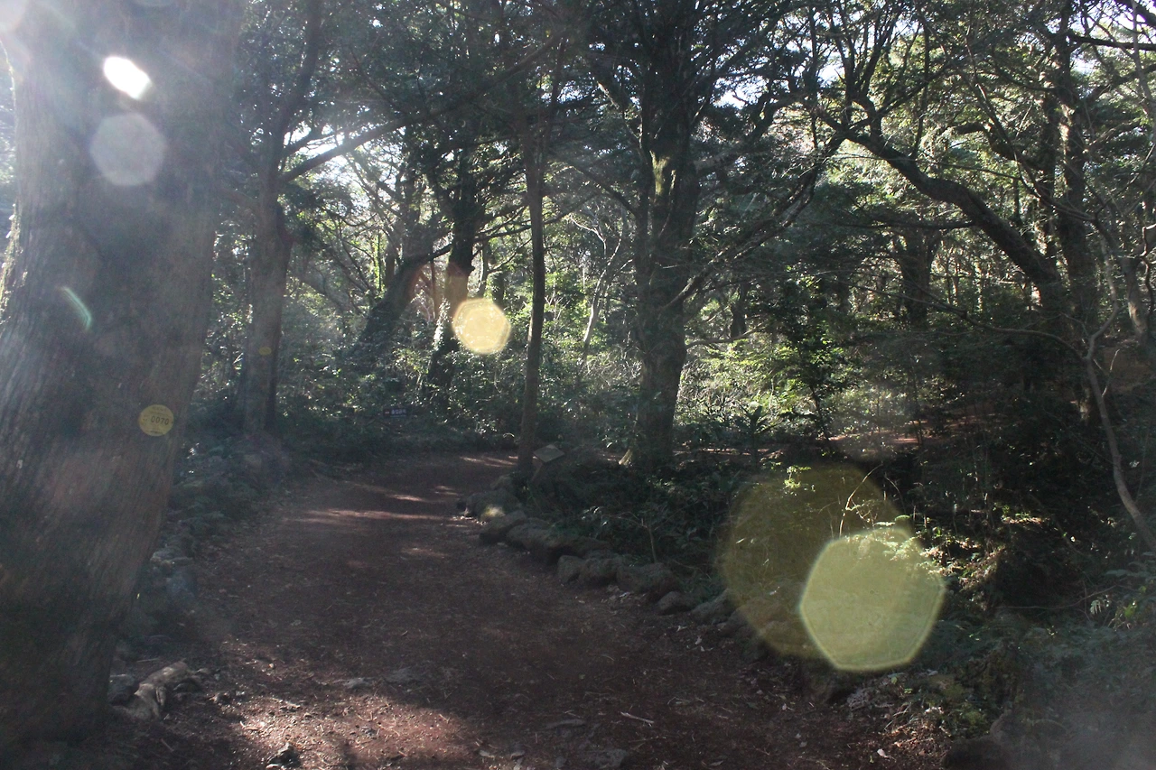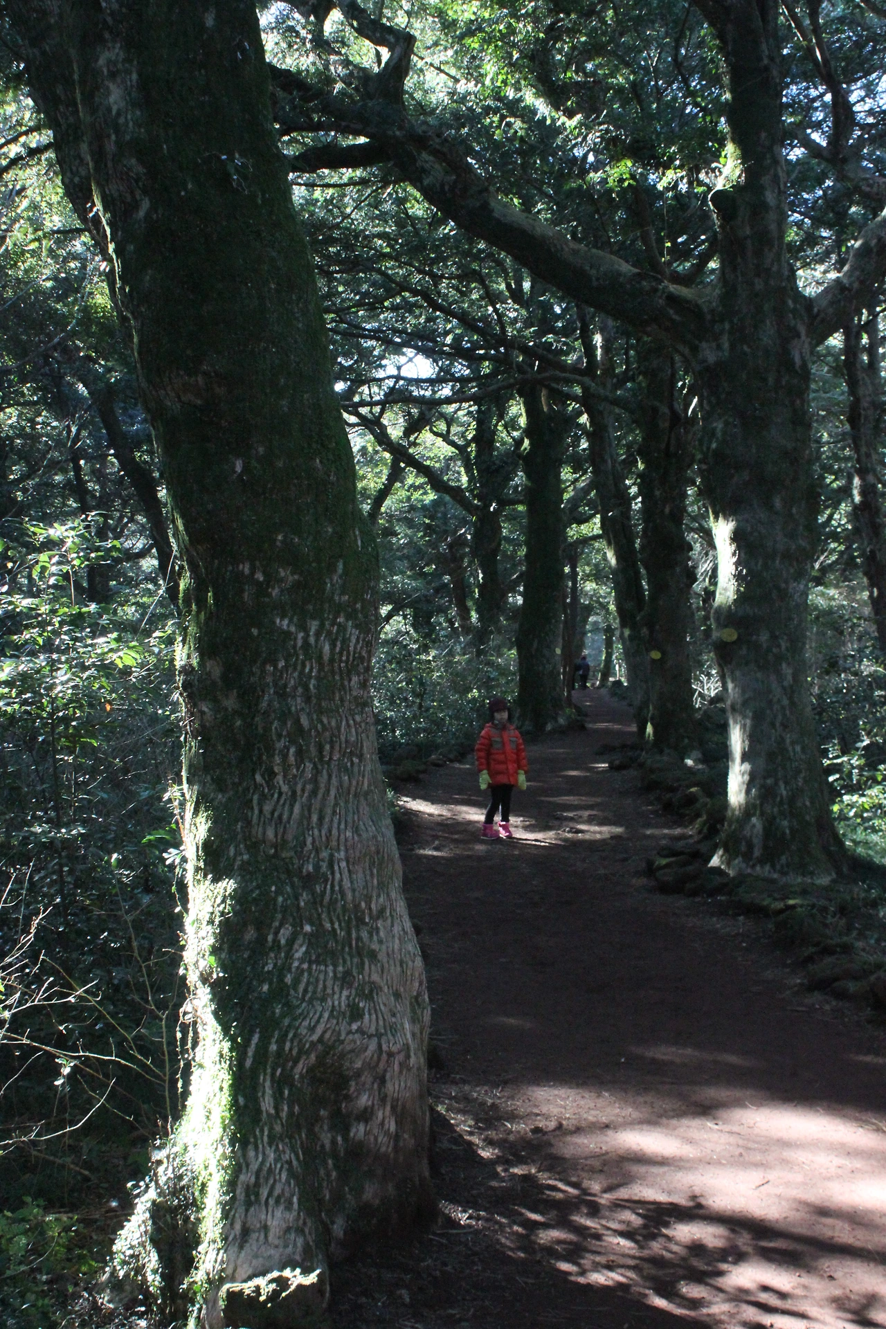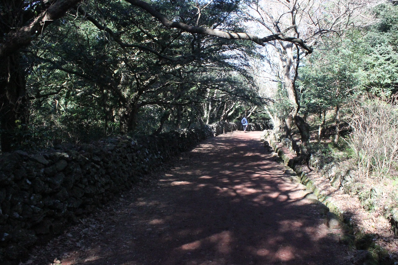 빨간 화산석을 밟으며 숲이 내어주는 신선한 공기를 마시며 숲으로 들어간다.