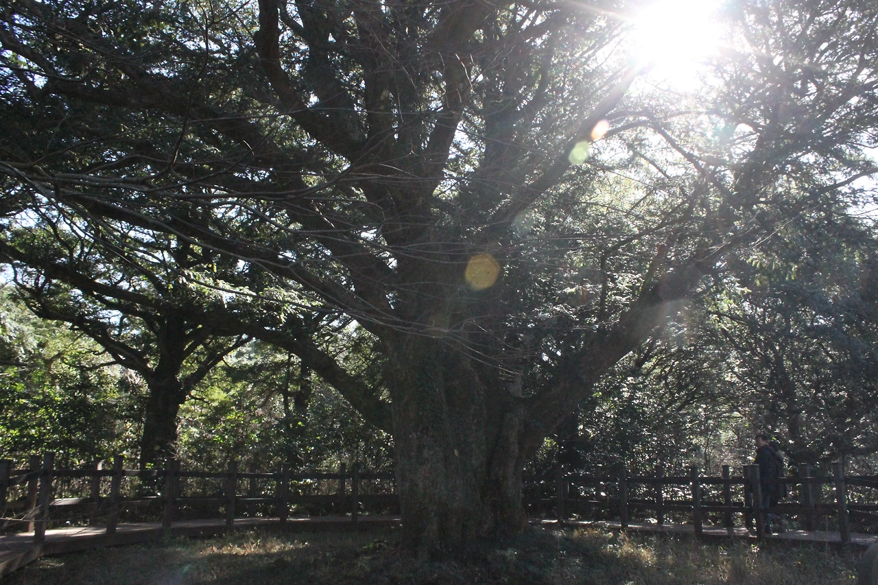 이런저런 이야기를 하며 40여분 걸어 들어가자 이름도 거창한 '새천년 비자나무'가 웅장한 모습을 보여준다.