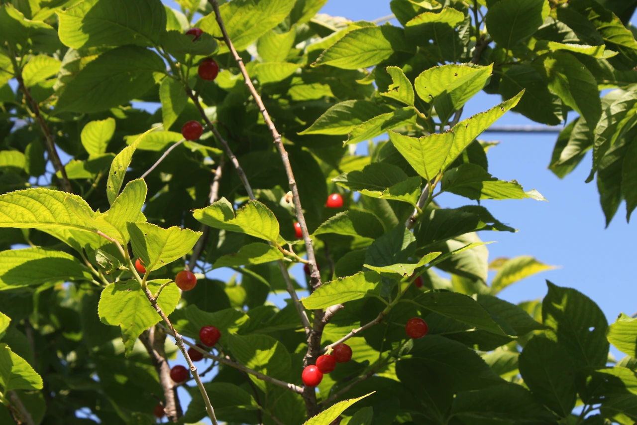 벌써 그림자를 찾는 여름의 길이 보여 한쪽으로 비켜 갔다가 나무에 빨간 무언가가 달려 있는 걸 보고 의심스러워 그냥 비켜 가는데 앞에 섬소년처럼 까만 아이가 그릇을 가져와 따간다. 슬쩍 이야기해 보니 이 동네 아이였다. 그 빨간 열매를 자연의 선물이라며 열심히 따고 있었다. 혹시나 해서 ‘앵두 먹으려고 따는 거니?’ 하고 찔러봤더니