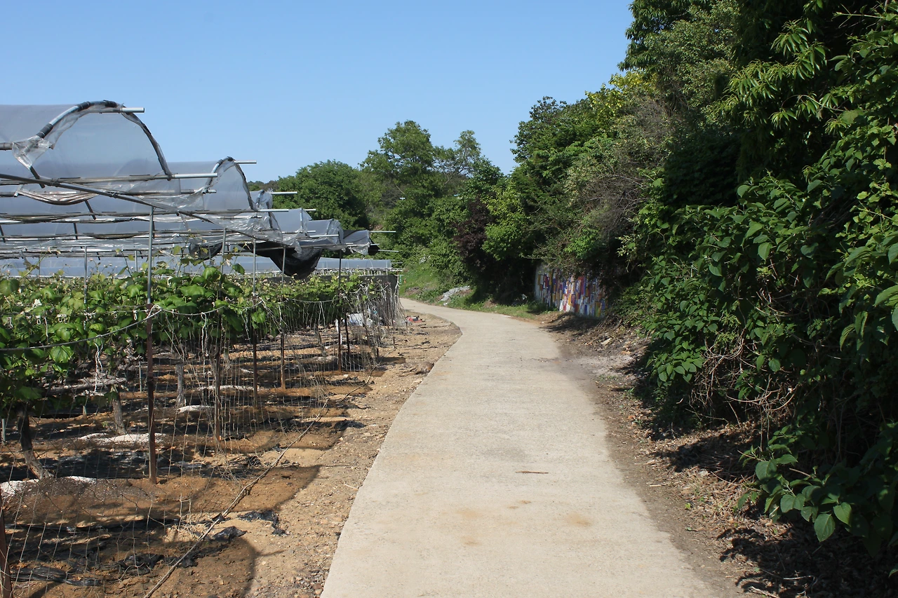현지인의 믿음 있는 말에 나도 한주먹 따다가 디저트로 먹으려고 모아뒀다. 어촌 체험 마을을 지나 청소년 수련원 옆길로 나있는 길은 나무들이 아름드리 나 있어 시원하고 청량한 기분을 주는 차도 잘 다니지 않는 아름다운 길이었다. 그 길을 걸으며 상쾌한 기분에 젖어 있다가