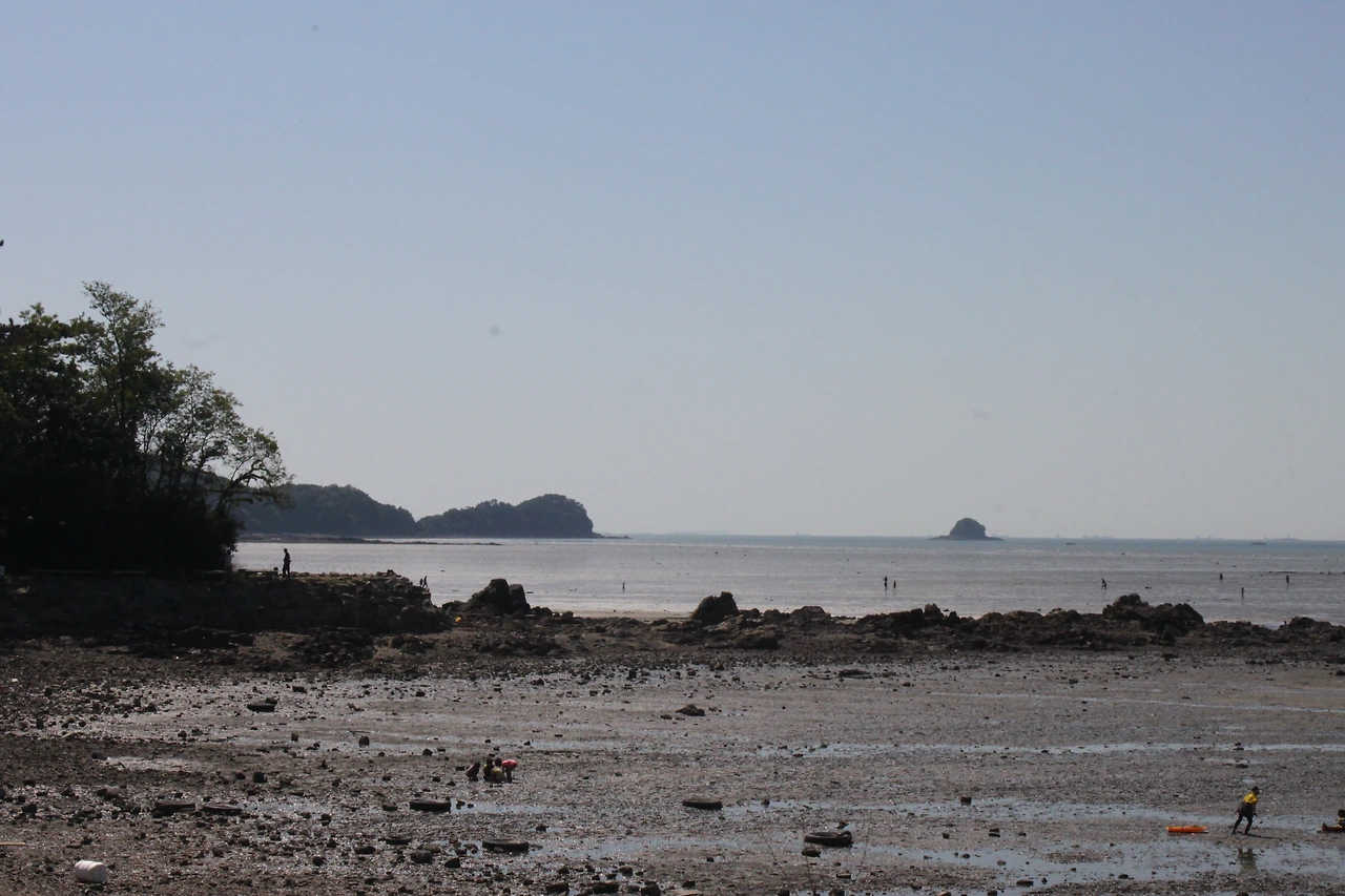 물이 빠져 뻘밭에 덩그러니 남아 있는 작은 섬과 바위들의 모습이 그리고, 누군가 왔다 간 듯한 수풀이 무언가 이야기하는 듯해서 그 자리에 앉아 스케치를 한다.. 그리는 사이 진구 형과 성진이에게 전화가 온다. 남자 둘이 만나서 술을 먹는다길래 내가 생각났다고,,,