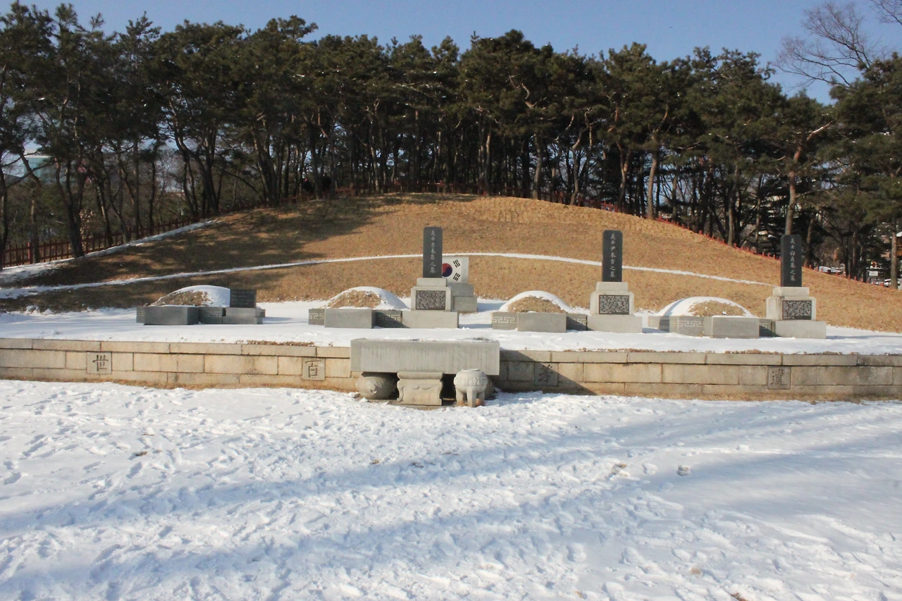 공원 외곽으로 걷고 돌다 보니 작은 놀이터와 쉼터가 나오고, 할아버지 할머니와 비료포대로 눈썰매를 타는 아이도 눈에 띈다. 혼자 모자를 푹 눌러쓰고 마스크를 쓰고 자신을 알리고 싶지 않은 아가씨도, 사이좋은 할아버지 할머니는 손을 잡고 끊임없이 이야기하시며 걸으신다. 강아지 스피치종을 데리고 똥을 치우는 동네 대학생도 어색한 웃음을 지으며 지나가고, 그들은 나라를 찾으려고 자신 한 몸 기꺼이 내주었던 의사들의 주변을 돌며 그분들의 편안해진 마음을 느끼며 흙을 밟아 돌고 있다.