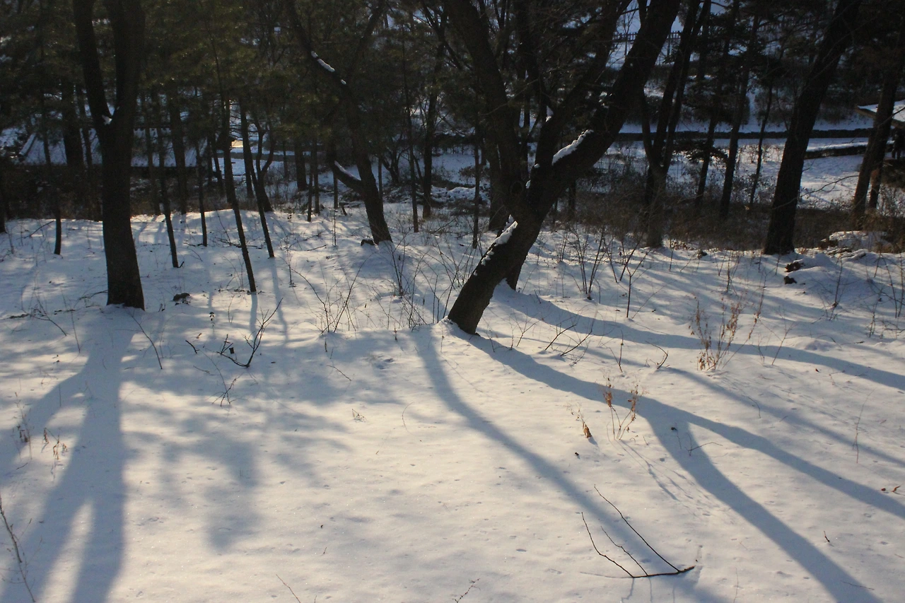 눈으로 뒤덮인 그 공간을 걸으며 흙보다 눈을 밟는 소리도 사각사각 정겹다.