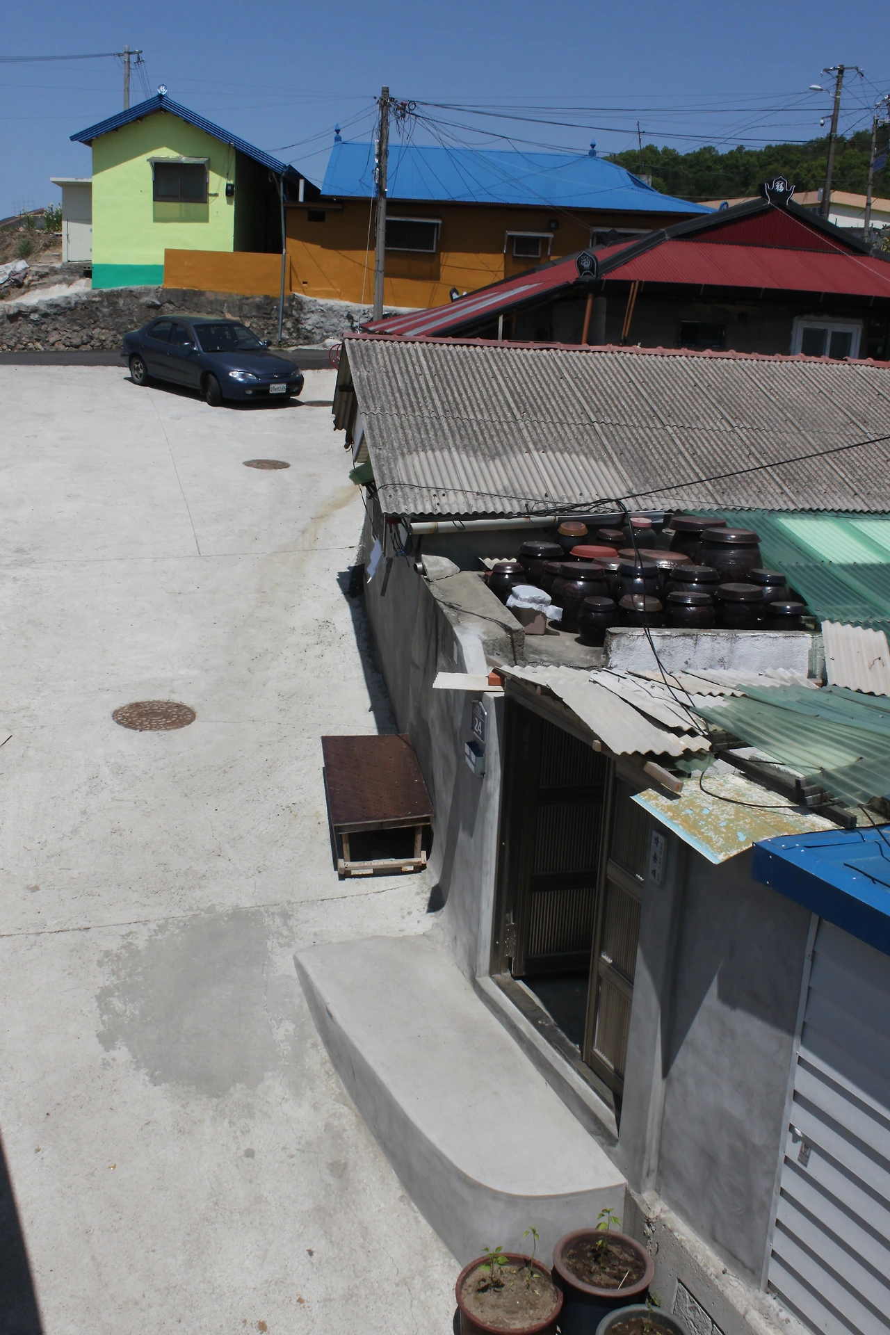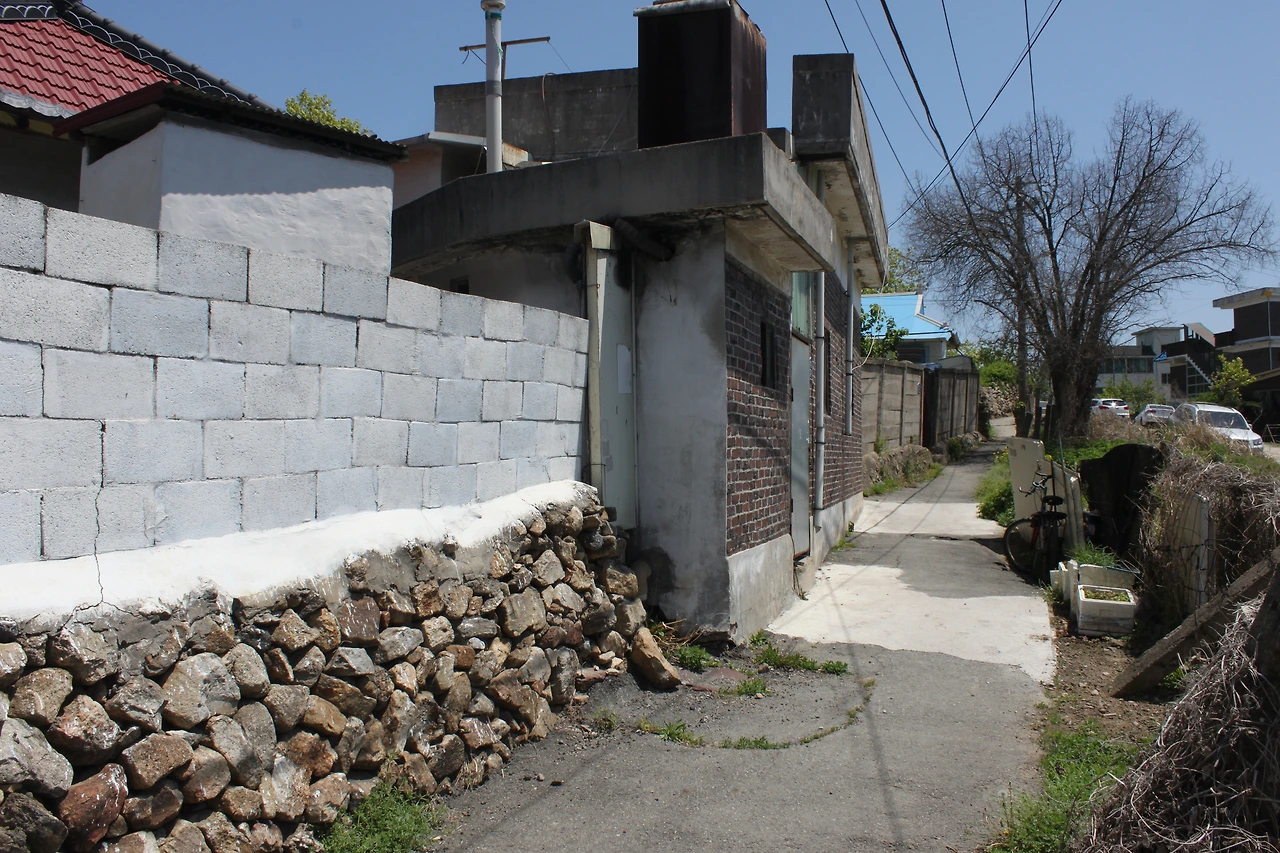 산성길을 따라서 가다 내려가니 오읍약수가 있었는데 약수는 대장균 검출로 사용 금지되어 있었고 길을 내려가 마을로 들어갔다. 마을에는 도로가 가로질러 가는 공사를 하고 있었고 공사 덕분에 길은 조금 엉망이 되어 있었다. 거기서 길을 잘못 들어 한참을 돌아 돌아 가서 '박진희 미술관'에 들어가게 되었다. 부부가 하는 농기계 창고를 개조해서 만든 그 공간에는 행사가 있었는지 분주하고 바빠 보였으나 미술관에 들어가니 친절하게 응대해 주셨다.