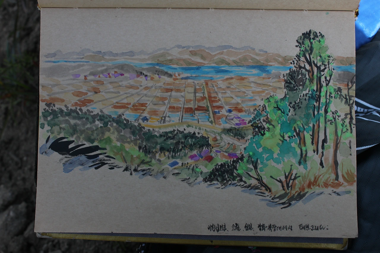 강화향교와 강화여중 여고를 지나쳐 은색을 띄는 은수물을 먹어보고 산길을 지나쳐 북문에 올랐다. 북문에 이어지는 산성길을 따라가니 북장대가 있던 터가 나오고 거기서 시원하게 뚫린 풍경을 스케치북에 담아 넣었다.