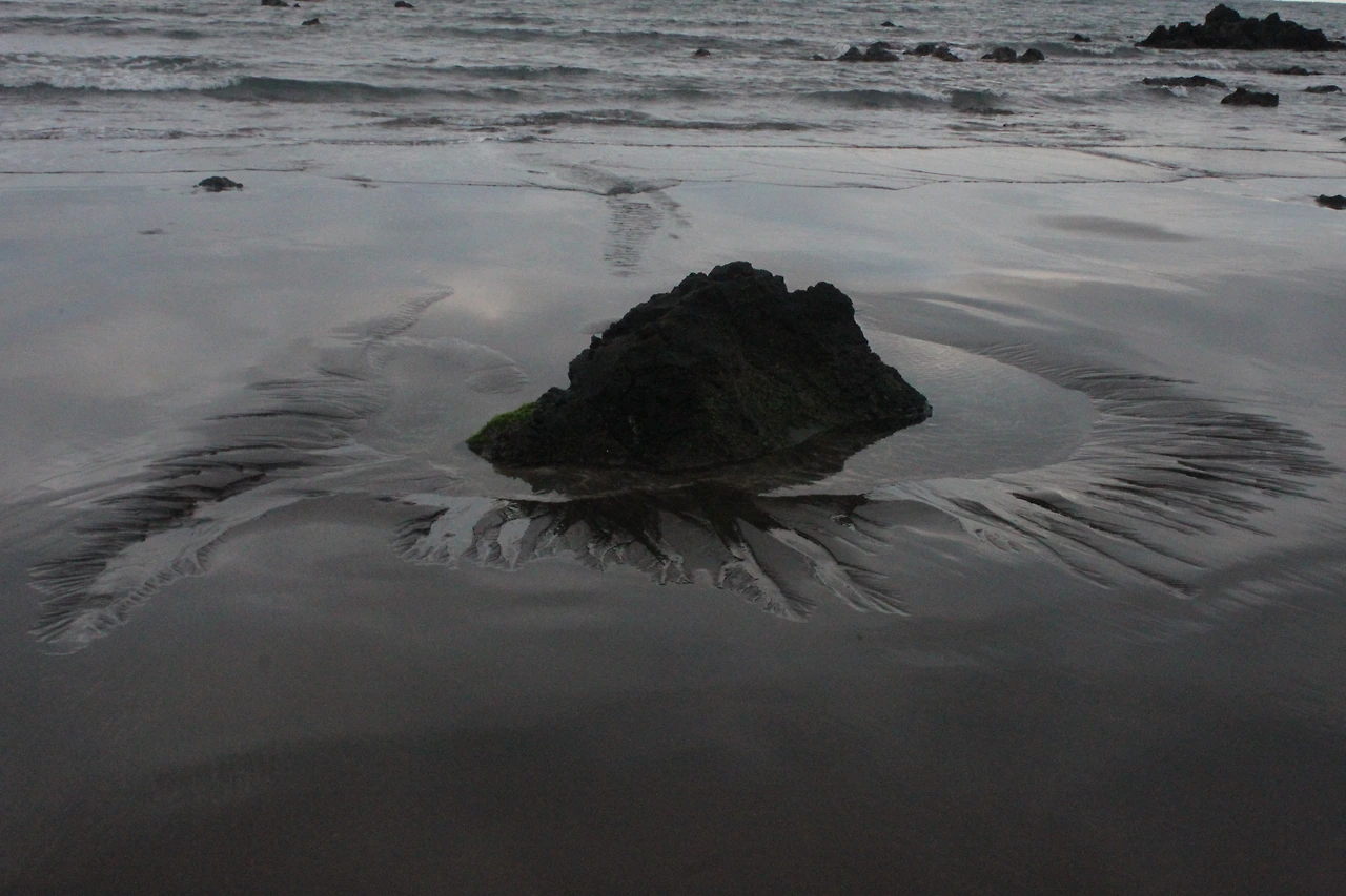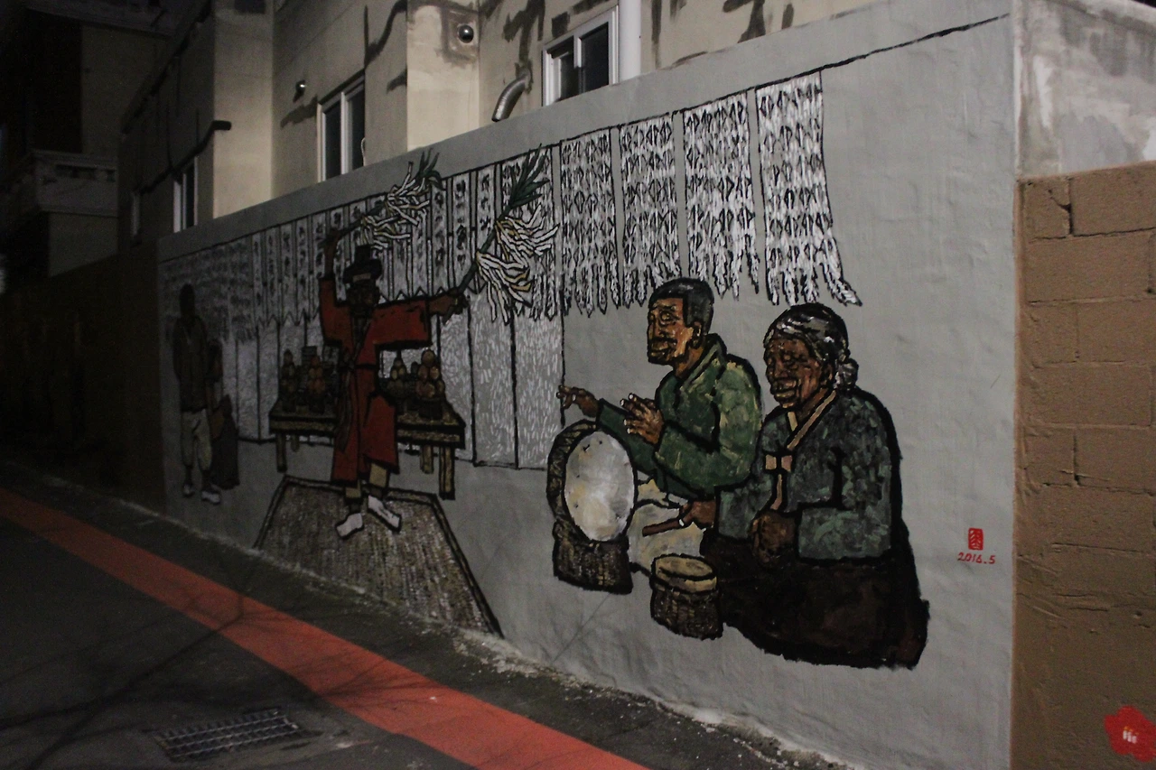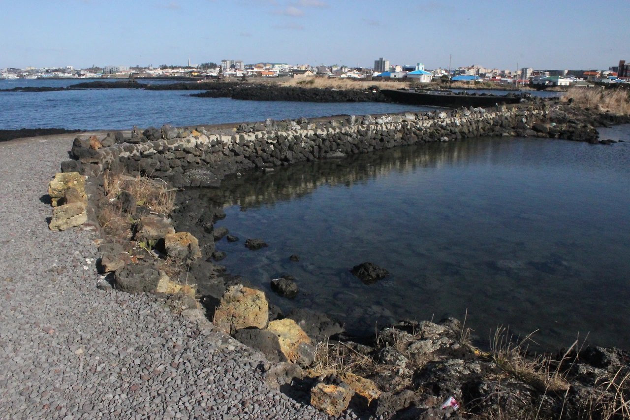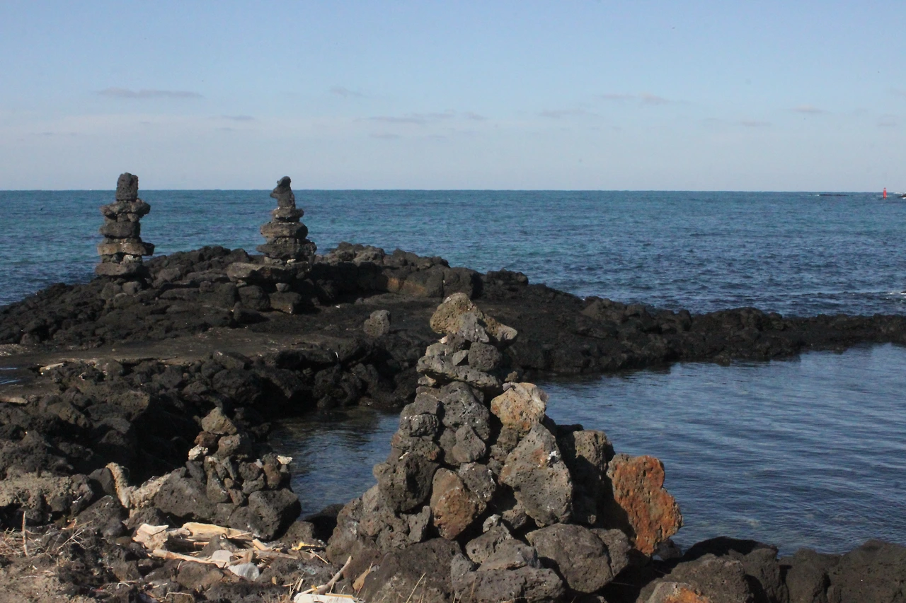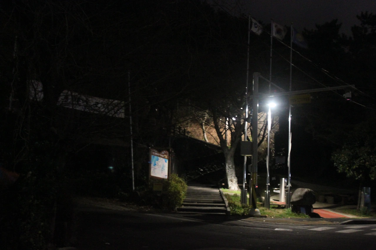 어두워지는 바닷길을 따라 '화북포구'에 도착한다. '곤을동 마을'을 지나 다리를 건너 어두워진 냇가를 건너다 미끄러질 뻔했다. 조명이 없어 조금 위험하다가 길을 따라가니 '별도봉체 갈림길'로 가는 길은 조명이 있어 상대적으로 편하게 간다. '애기업은 돌'을 지나는데 제주도분이 의미가 아기를 업은 게 아니라 떨어지지 않고 산에 잘 매달려 있다는 의미의 '애기업은 돌'이라고 한다.
