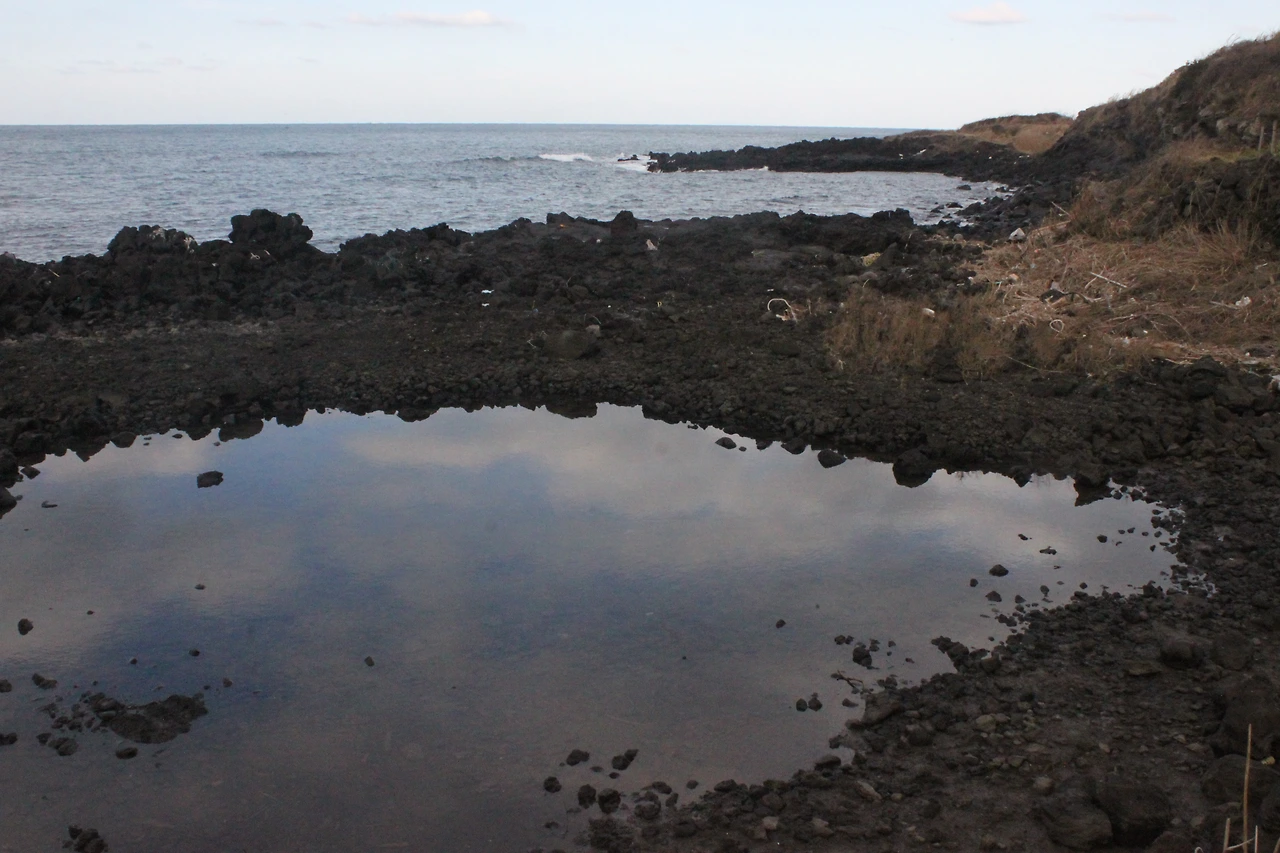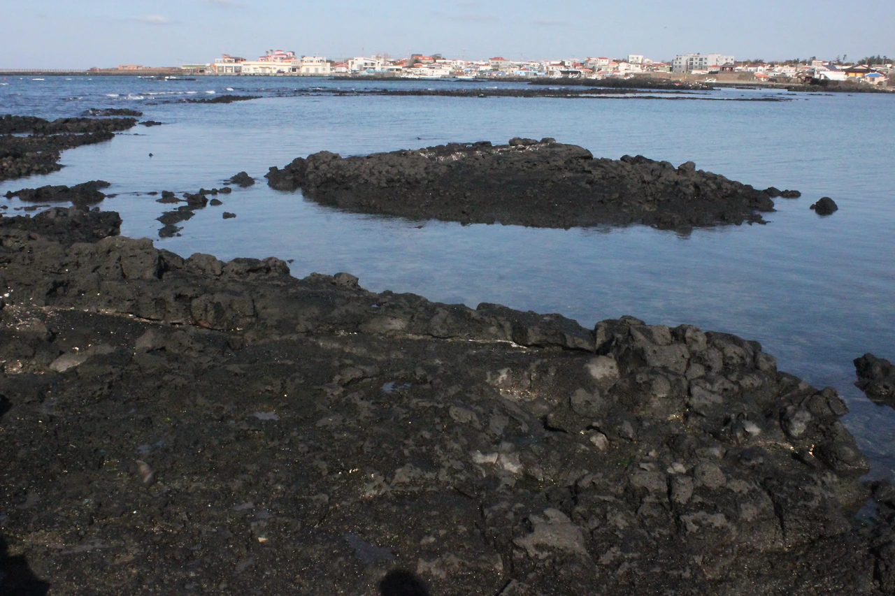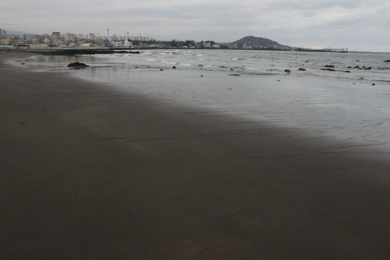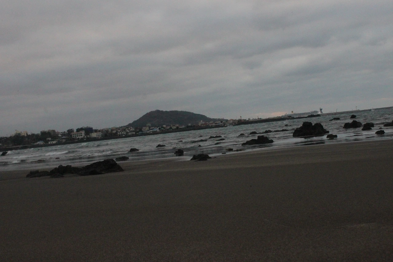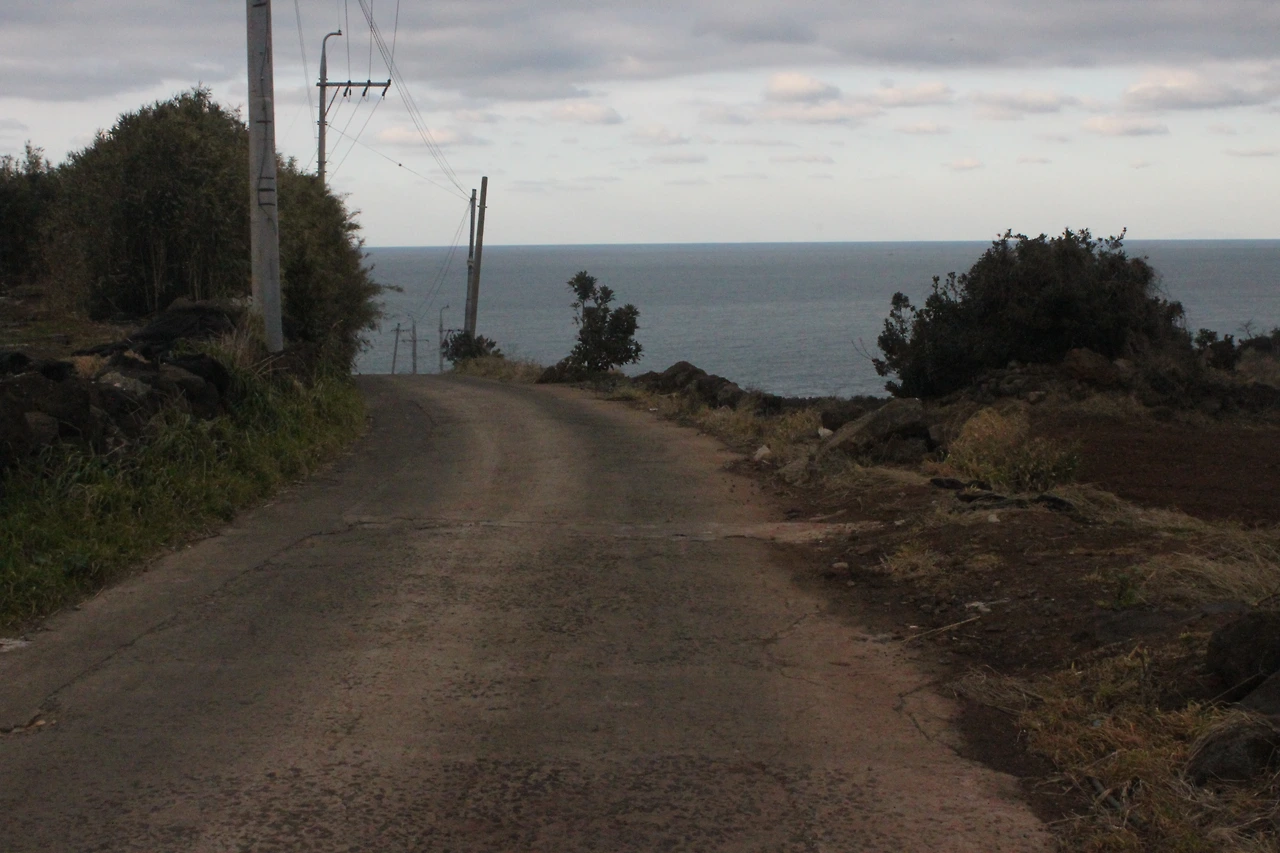 '삼양 검은 모래 해변'에 도착하니 이렇게 고운 검은 모래가 펼쳐진 해변이 우리나라에 있다니 너무 아름다워 입이 닫아지지 않는다. 아무도 걷지 않은 길을 걷다가 위에서 내려다보니 생각보다 길다. 아쉬운 게 있다면 유실되는 중인지 모래 밑에 다른 모래를 넣어 높이 올린듯한데 그 모래자루가 유실되어 보여서 시술한 수술 자국들처럼 보여 아쉽다. 해변을 걸어 '별도연대'로 가다 마을 어귀에서 '유람선'을 본다.