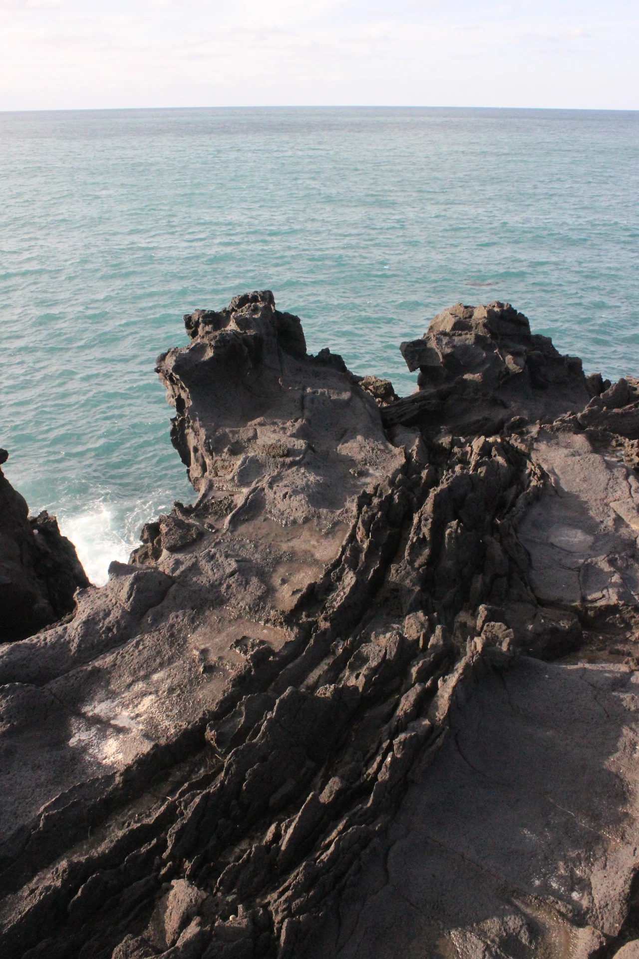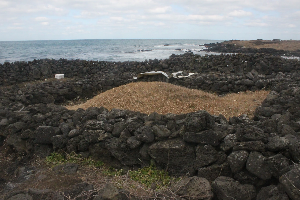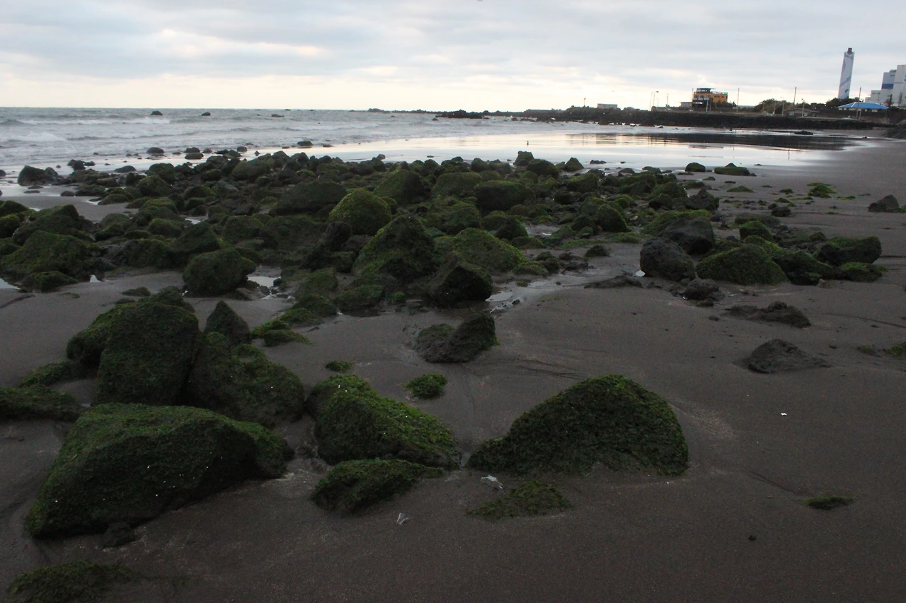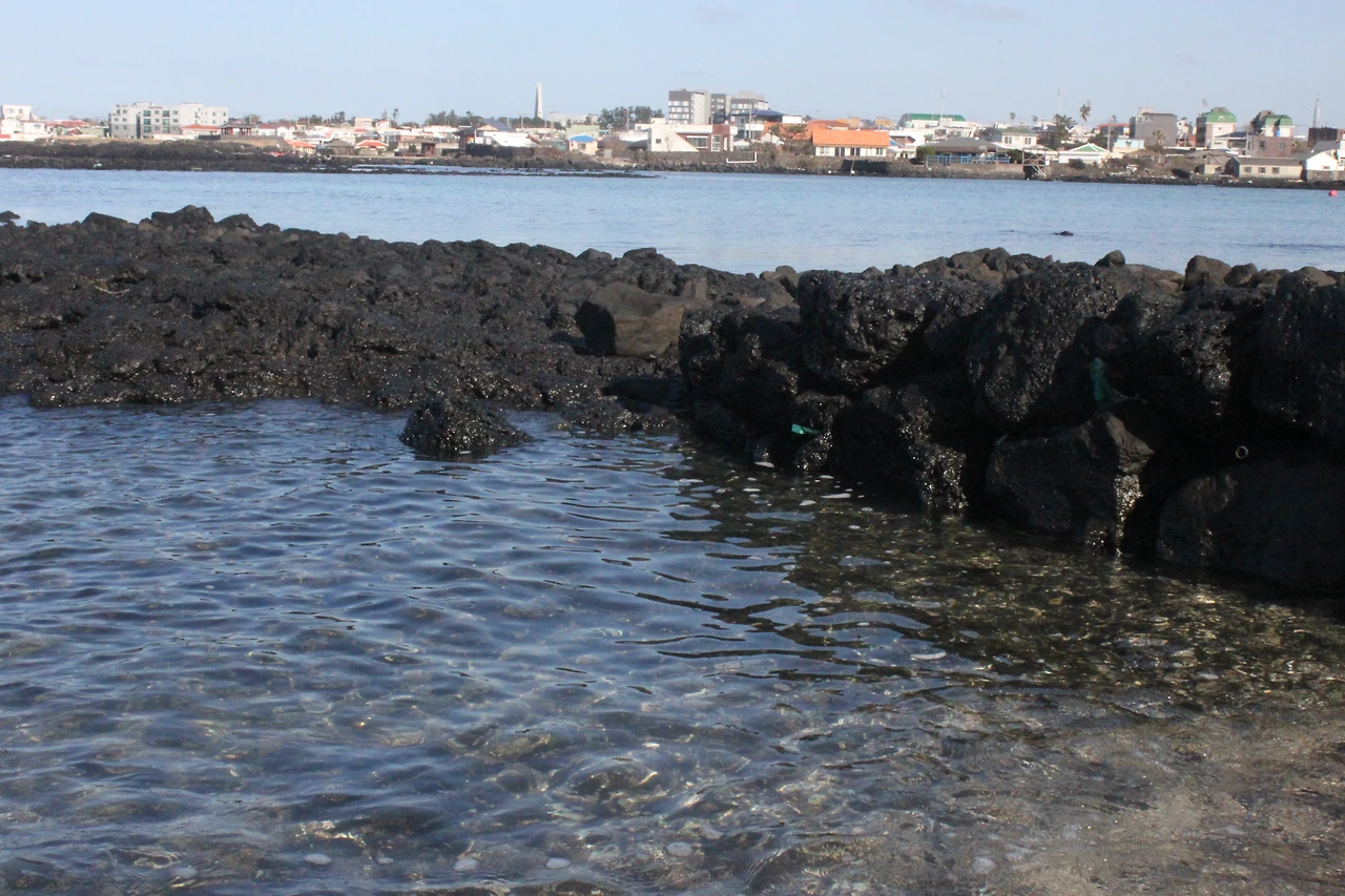 '삼양 검은 모래 해변'에 도착하니 이렇게 고운 검은 모래가 펼쳐진 해변이 우리나라에 있다니 너무 아름다워 입이 닫아지지 않는다. 아무도 걷지 않은 길을 걷다가 위에서 내려다보니 생각보다 길다. 아쉬운 게 있다면 유실되는 중인지 모래 밑에 다른 모래를 넣어 높이 올린듯한데 그 모래자루가 유실되어 보여서 시술한 수술 자국들처럼 보여 아쉽다. 해변을 걸어 '별도연대'로 가다 마을 어귀에서 '유람선'을 본다.