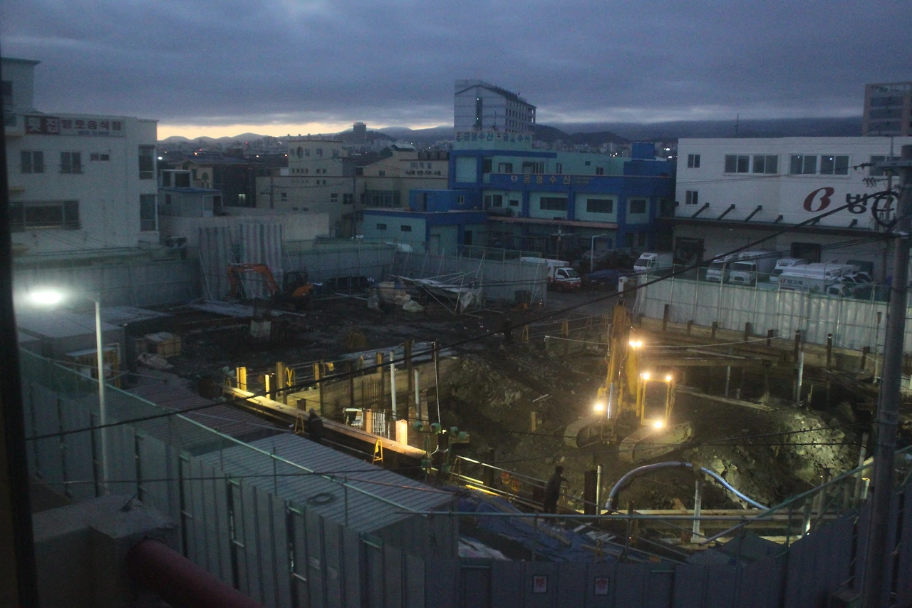대신 새벽까지 공사 중이던 옆 건물은 밤이 낮으로 바뀐 듯하고,