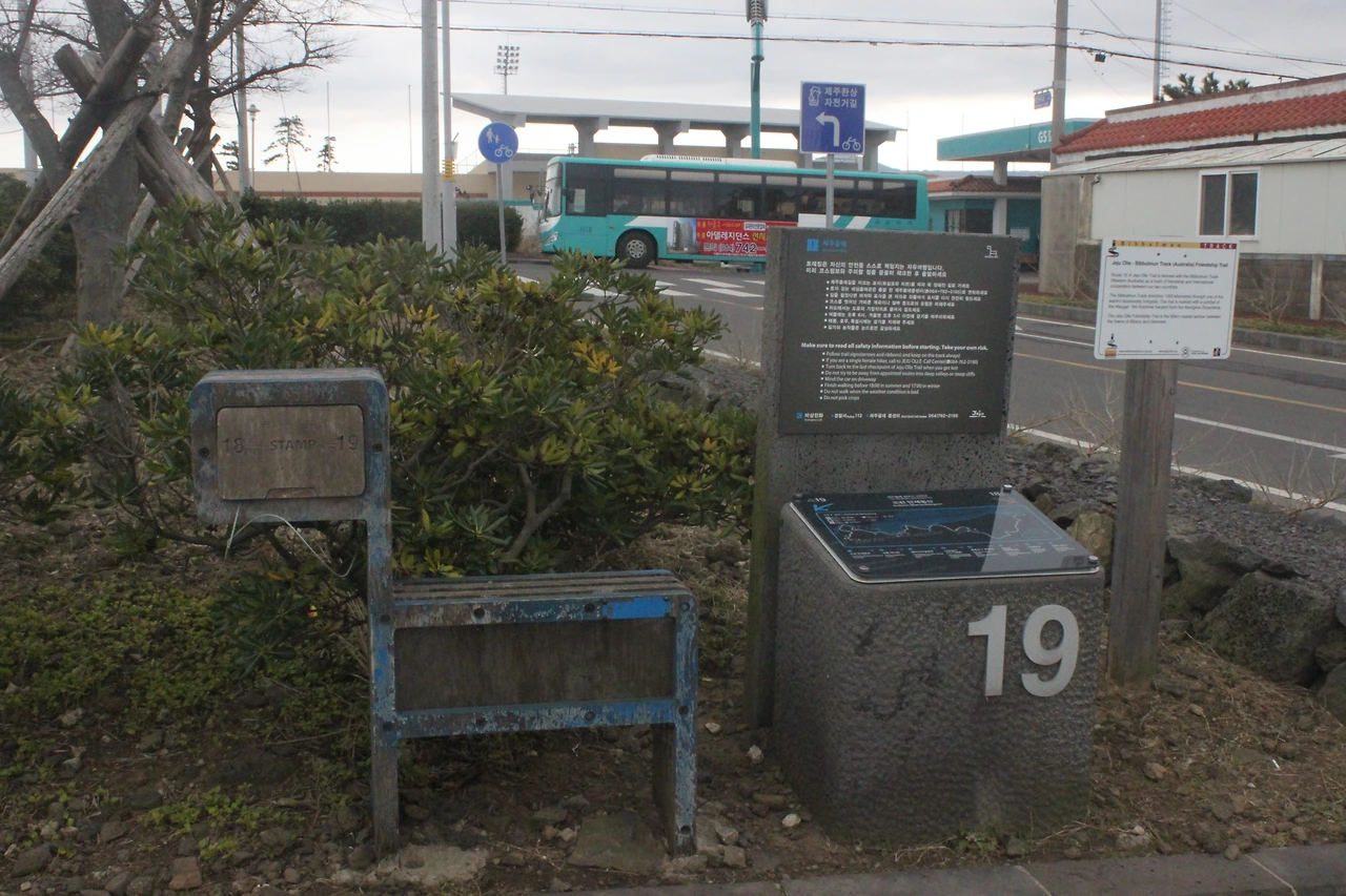 오늘은 제주시에 있는 18코스를 역으로 돌 예정이다. 17번 버스를 기다리는데 정말 자주 없다.