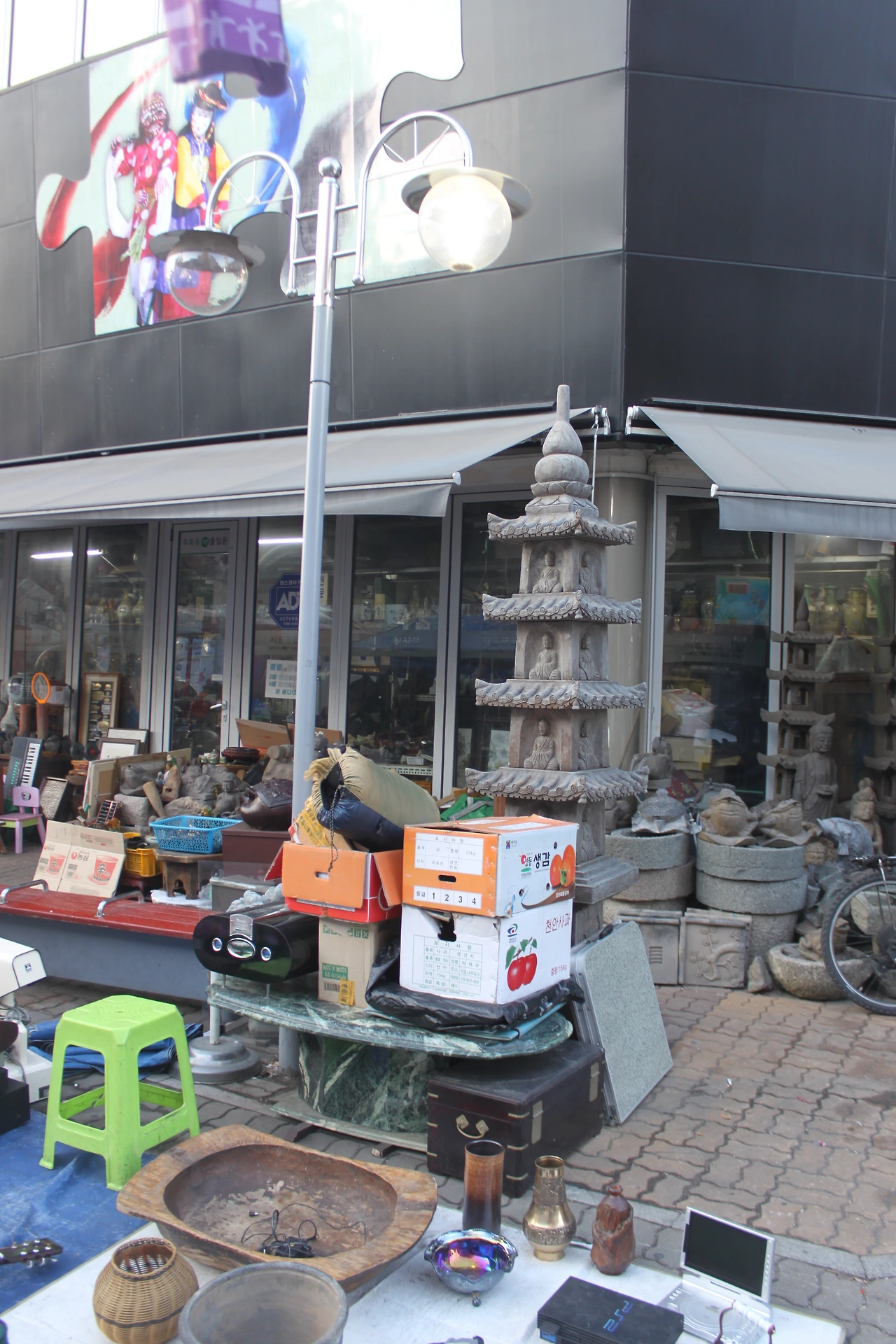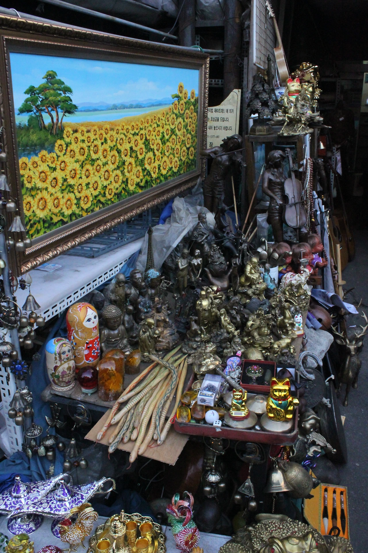 가는 길에 골동품들이 보이는데 30여 년 전 먹던 라면의 포장지도 액자에 넣어 파는 걸 보니 지금 먹는 과자의 포장지도 시간이란 마법을 부리면 매매가 가능해질 수도 있겠다 싶다.