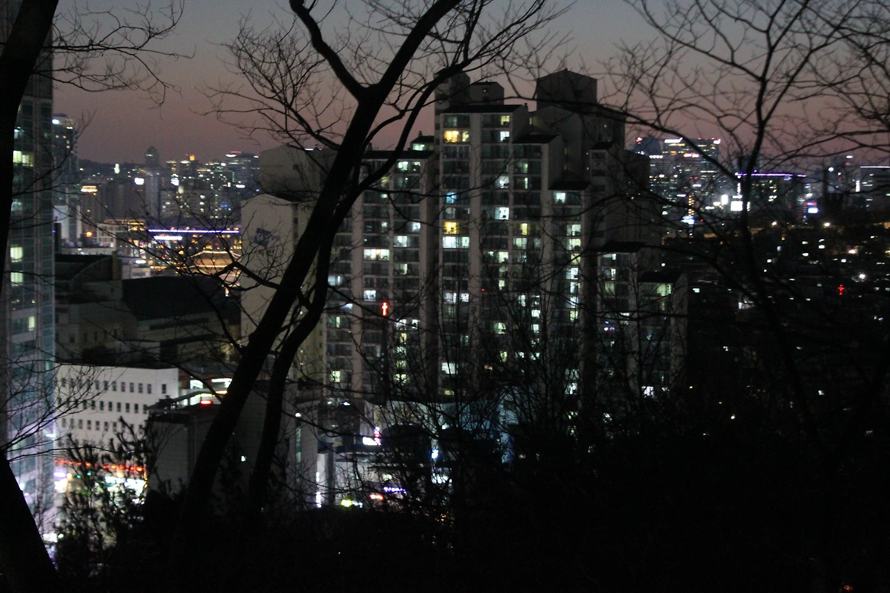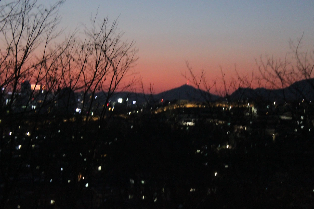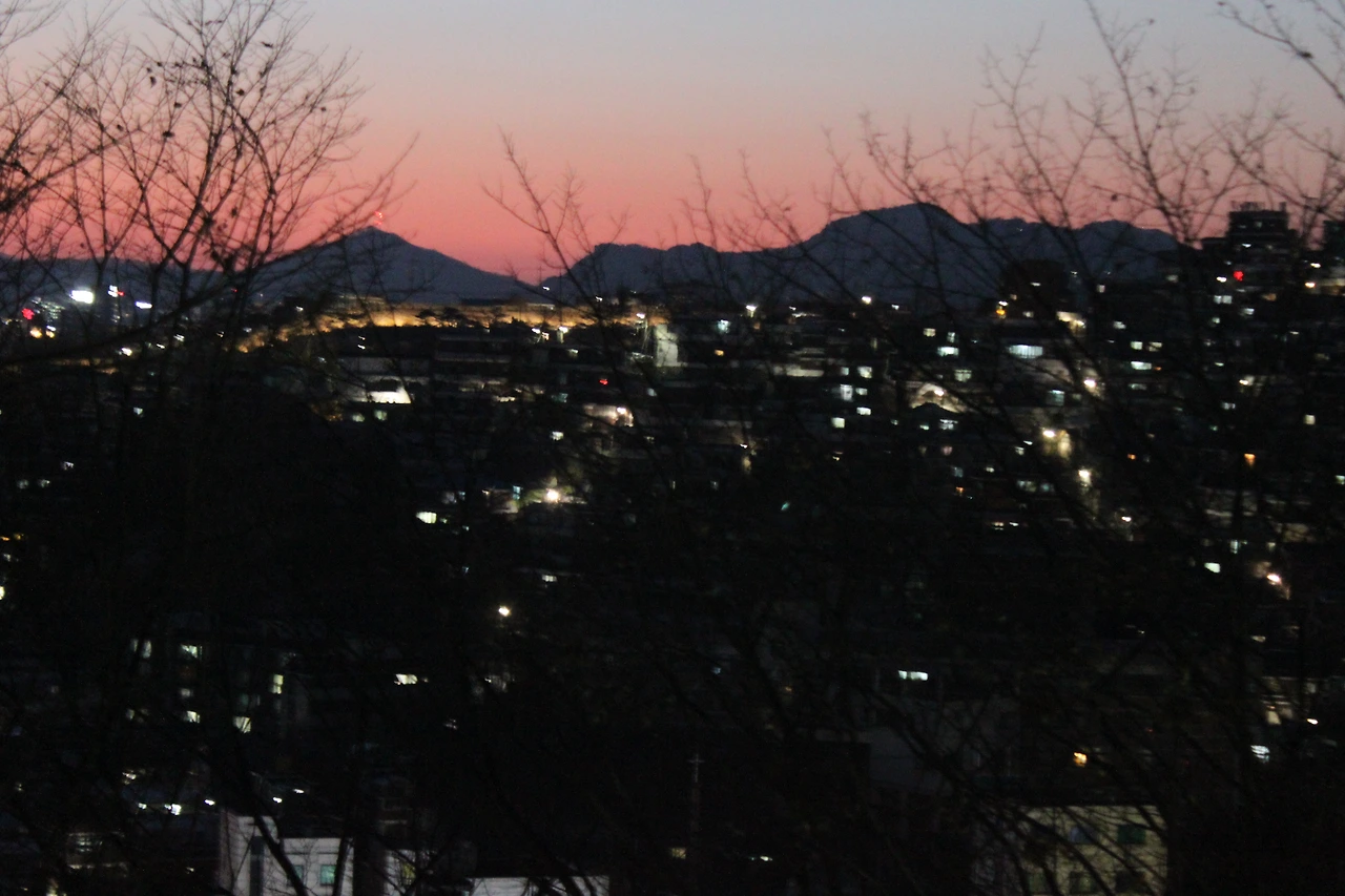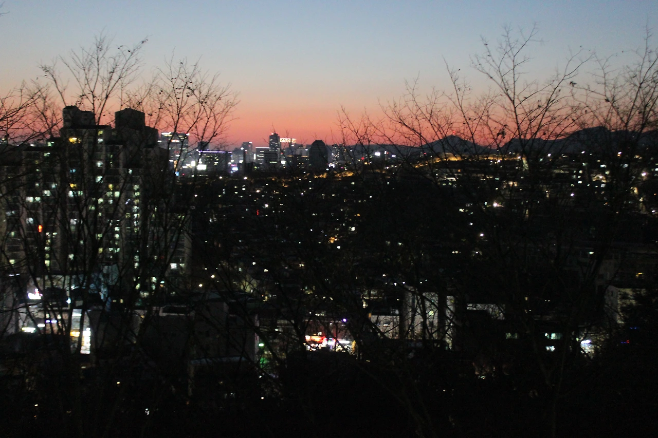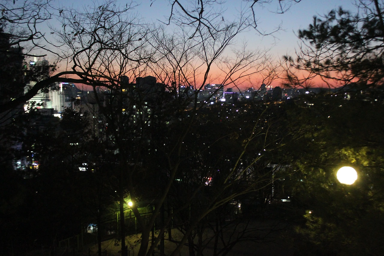 '숭인 근린공원' 그곳에는 서울시의 저녁 무렵이 약 부감으로 잎이 떨어진 나무들과 함께 시원하게 보였다.