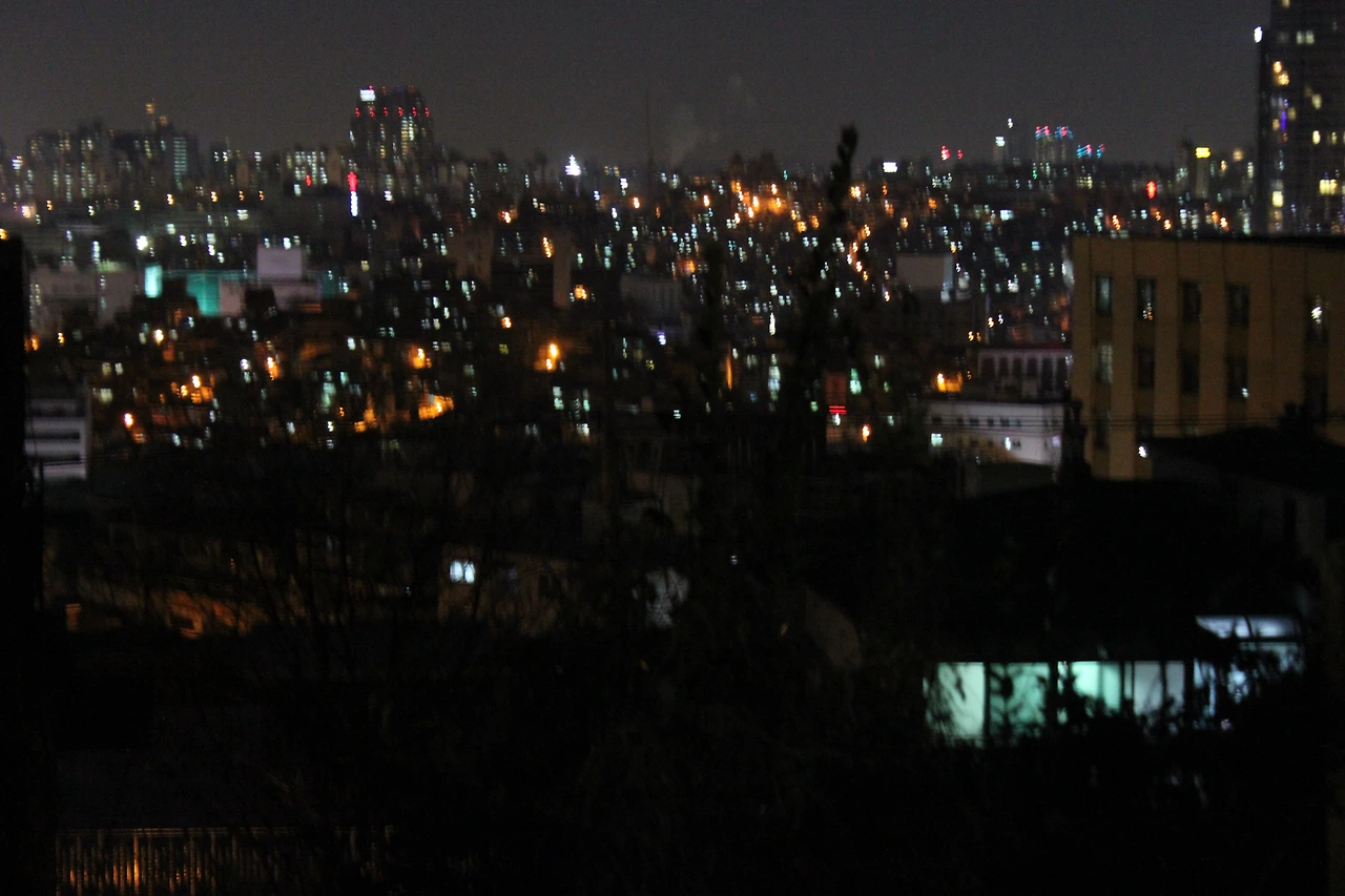 불빛들은 까만 집들과 길들 사이에서 알알이 박혀 있었다.