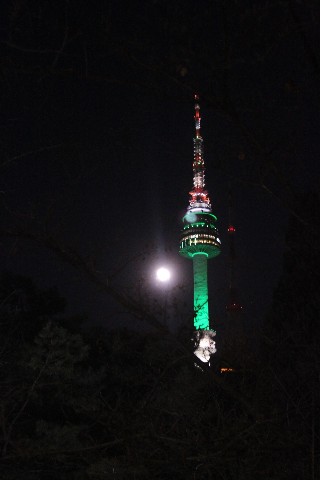 점점 도서관 쪽으로 가니 조금씩 달이 타워에 안긴다.