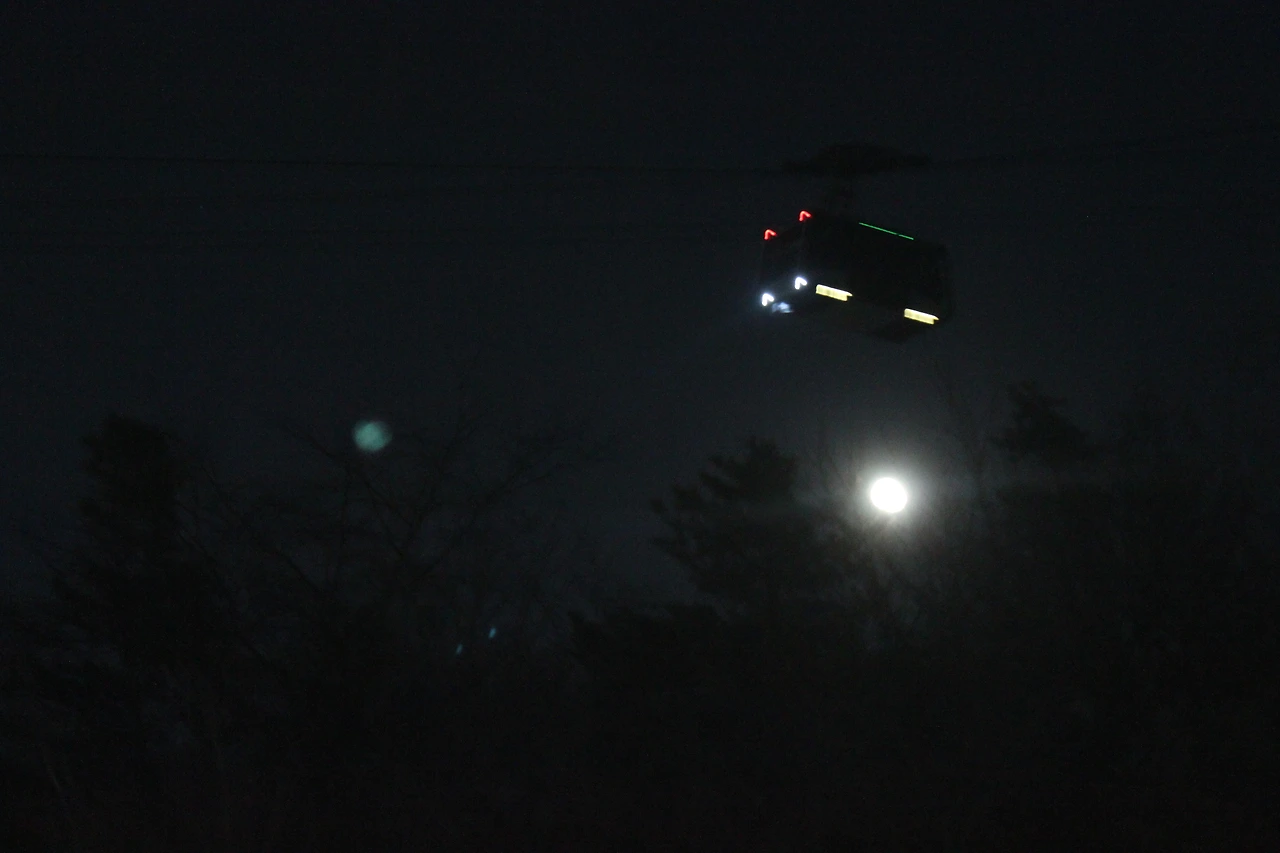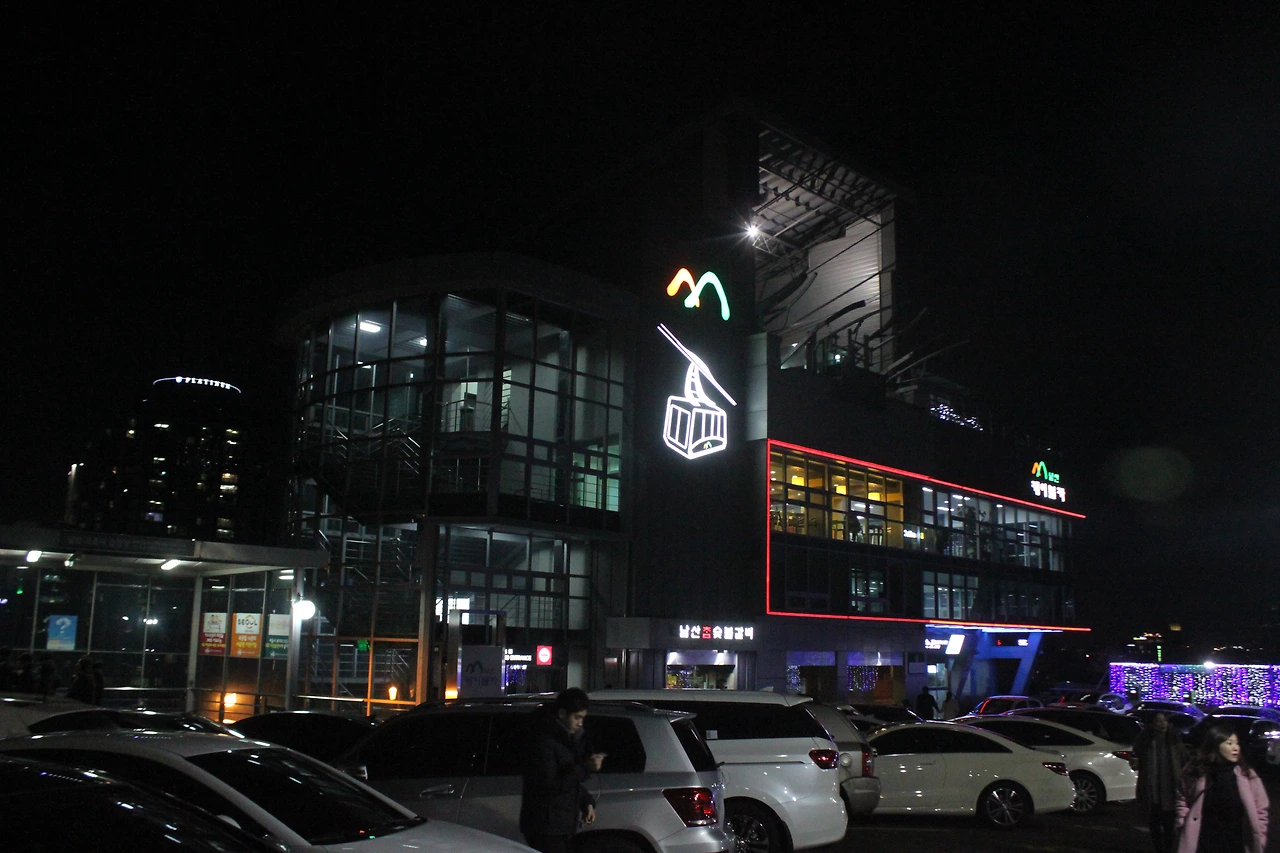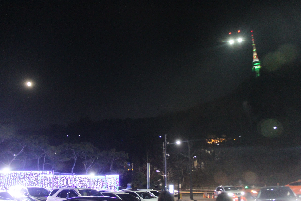 남산 케이블카 스테이션에서 타워를 바라보니 달이 타워와 싸운 듯 멀리 떨어져 한 앵글에 잡기 힘들다.