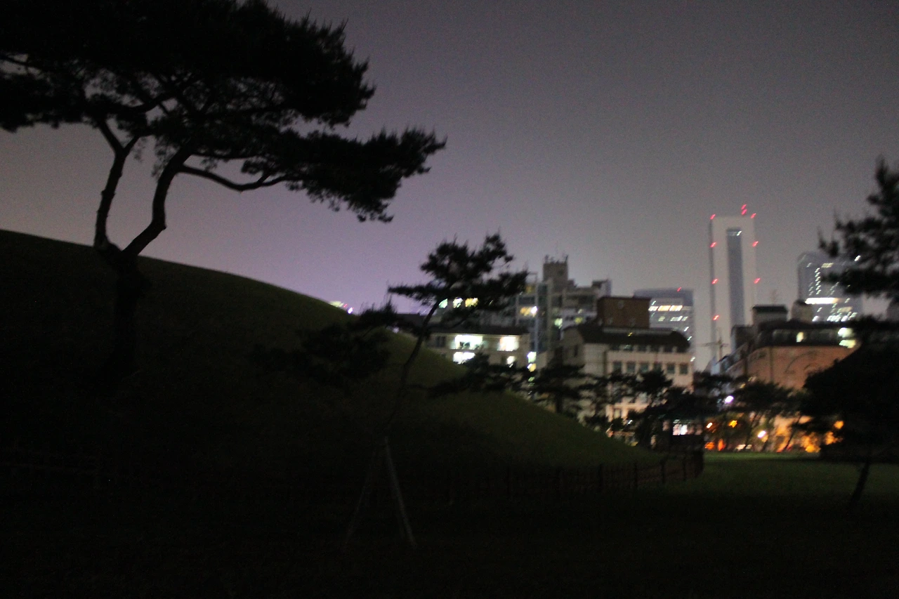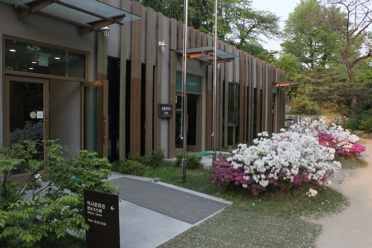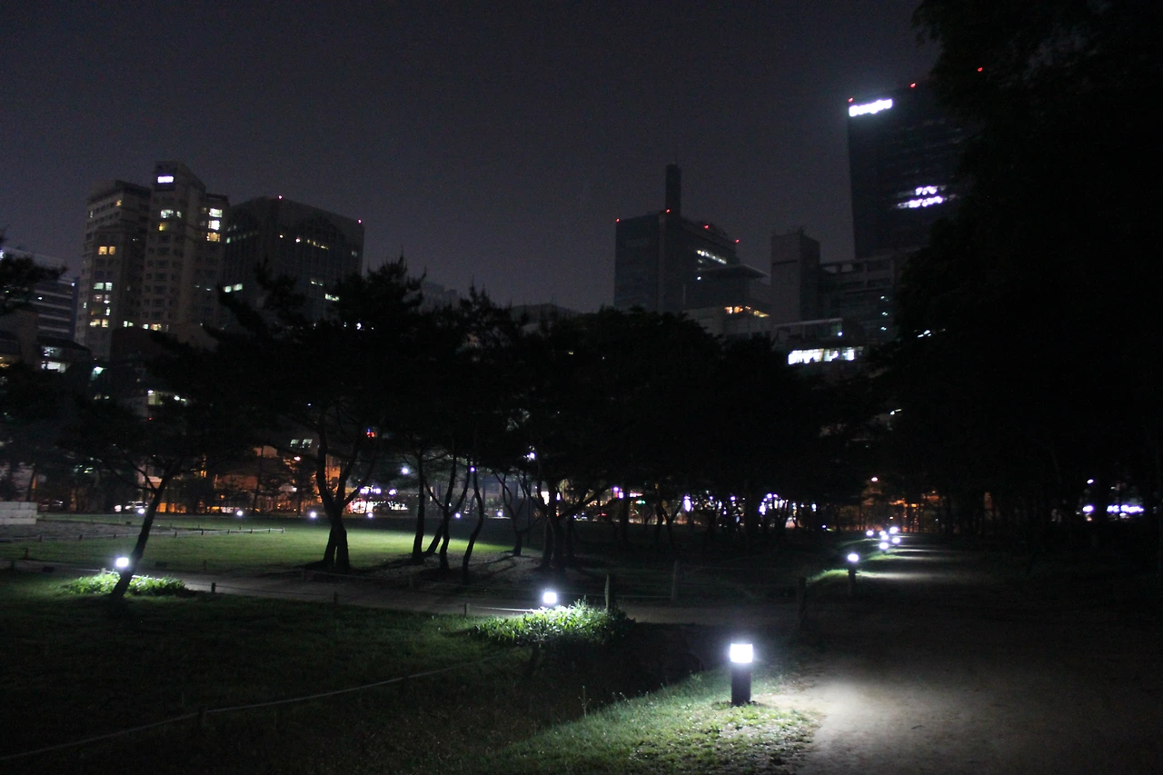 '역사문화관'과 '재실'을 지나 입구로 나오려다 의자에 앉아 글을 정리하고, 중종의 '정릉'의 밤 풍경을 담은 뒤 나온다.