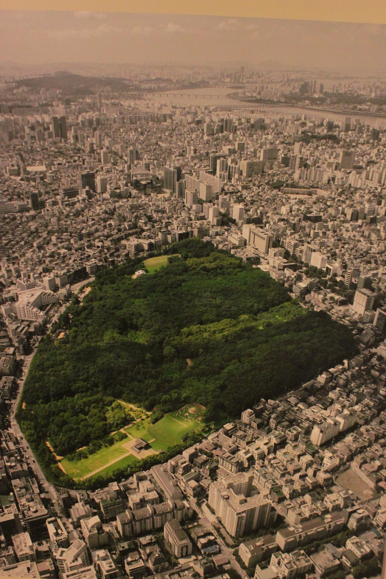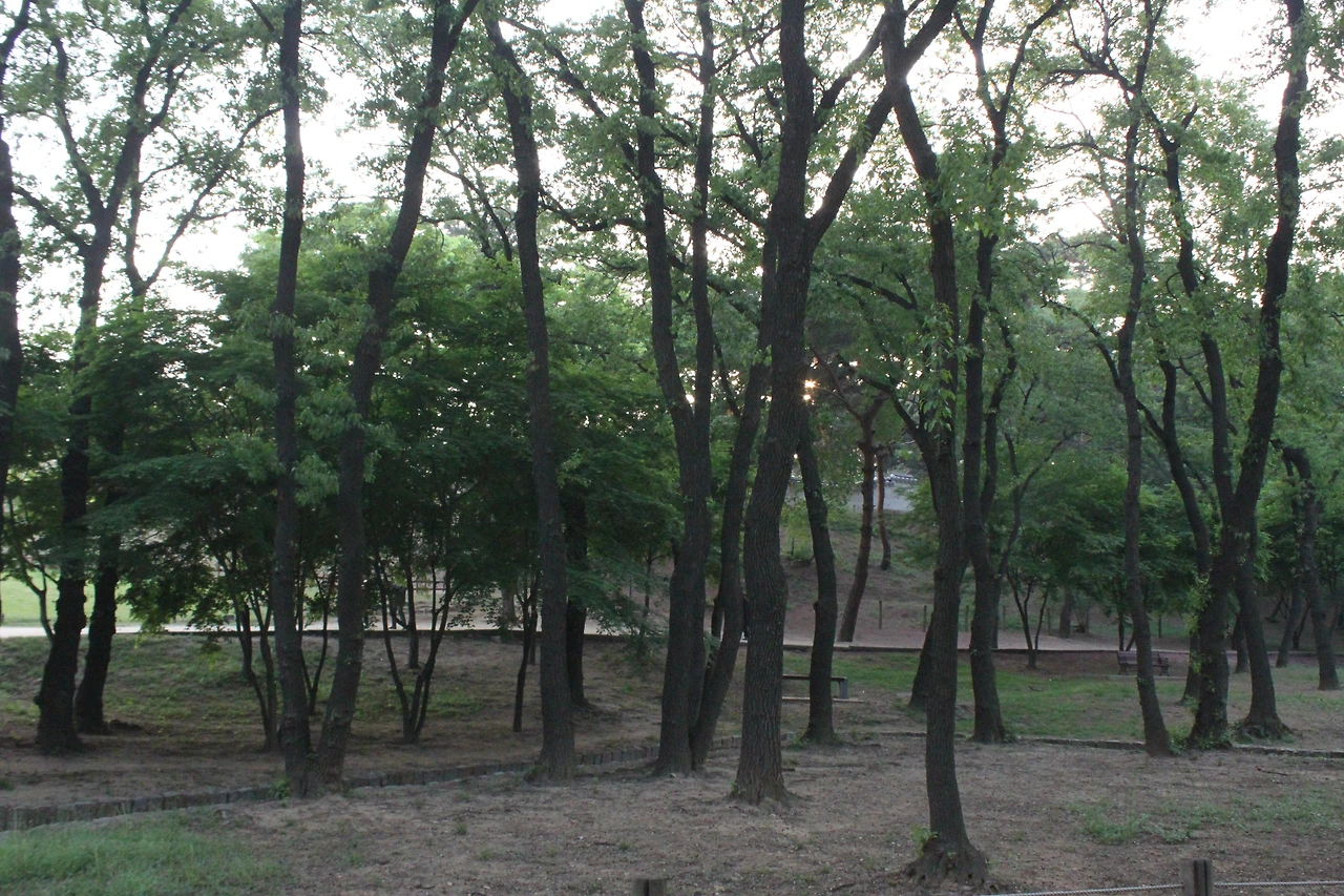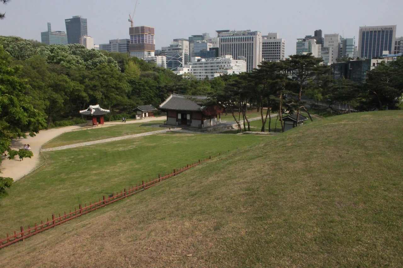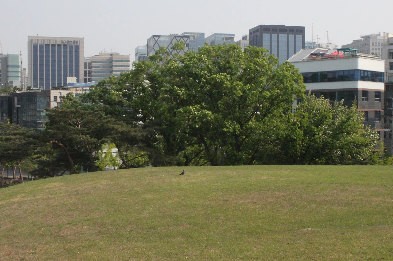 무덤 밑은 수풀로 빽빽하고, 부분은 여유롭지만 그 뒤로 현대문명이 만들어낸 건물들로 더더욱 빽빽하다.