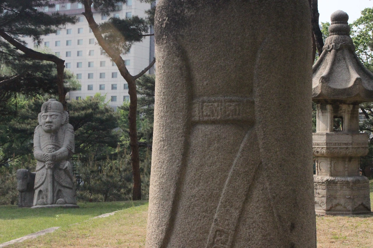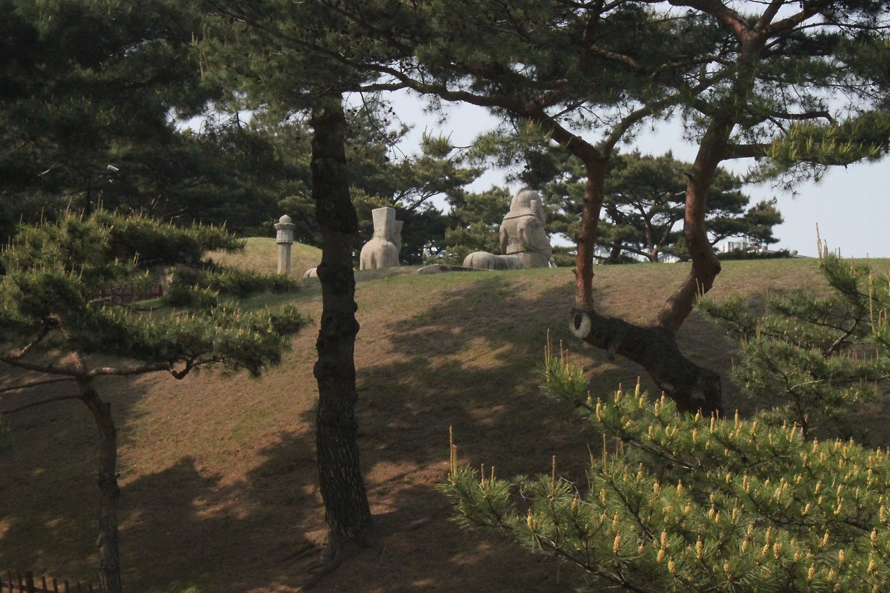 언덕으로 올라가니 빽빽한 '소나무 숲'이 더 장관을 이룬다. 그 숲을 보며 내려가다 선릉중 하나인 정현왕후 윤씨의 능이 나타난다. 중종의 능과 달리 한쪽으로 올라가 살펴볼 수 있는 공간이 있다. 왕족의 능답게 '문인석' '무인석' '석마'가 대열을 맞추어 있고 봉분은 높이 솟아있다. 잠시 살펴보고 내려와 성종의 무덤으로 올라간다.
