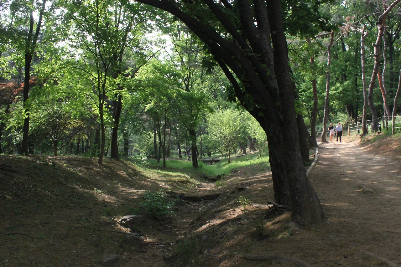 입구에서 아쉽지만 강남 주민들은 50프로 할인을 해주는 혜택을 못 받고, 벌써부터 뜨거워지는 햇살을 피해 릉으로 가는 숲 속으로 들어간다.