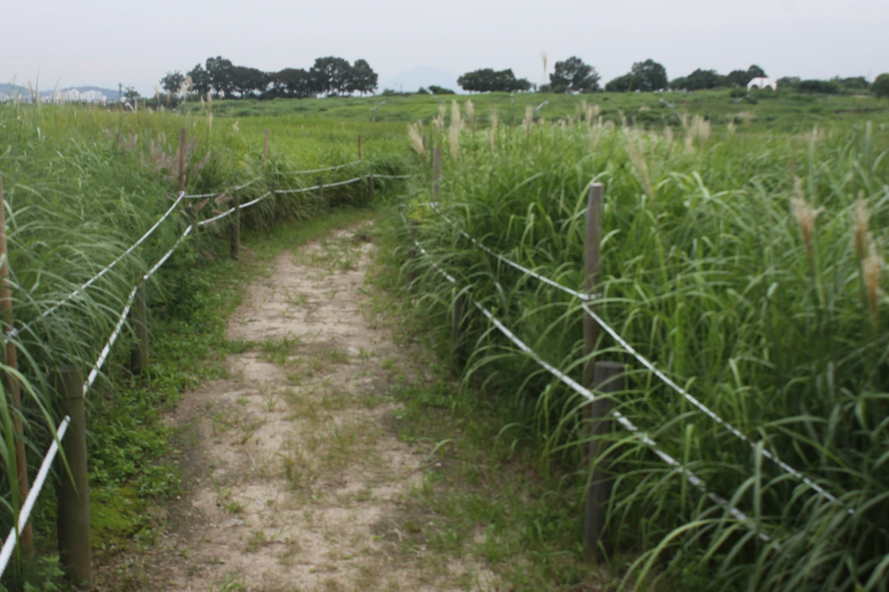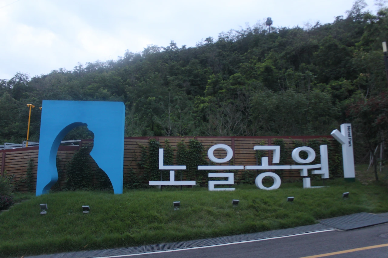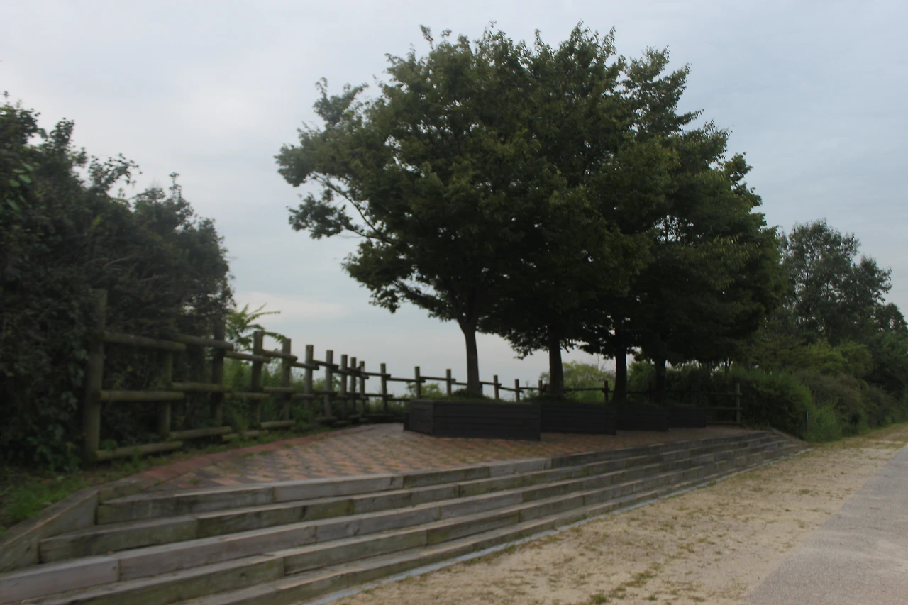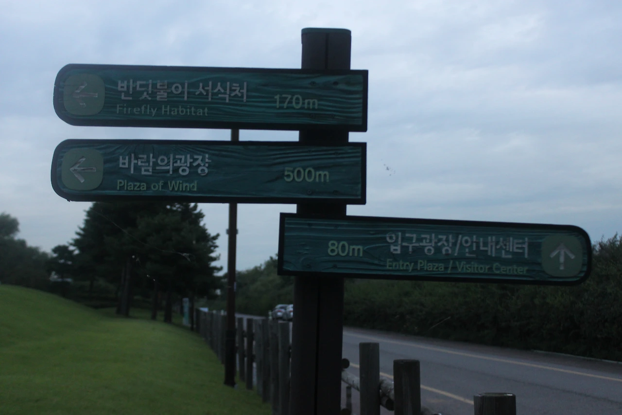 그 공간을 지나쳐 '노을 공원'으로 올라가는 입구를 찾는다. 올라가는 길에 맹꽁이 전기차가 올라가는데 나는 길을 조금 더 알아볼 요량으로 걸어가 본다. 걸어서 가는 길에는 나무가 울창히 사열해 있고 10여분 올라가니 노을공원으로 들어가는 입구에 도달한다. 조형물이 반기는 그곳에서 숲으로 들어가니 '반딧불이 서식지'가 습지로 조성되어 있다. 아직 날이 밝은 데다 계절이 늦어 반딧불이를 보기 힘들 것 같아 사진만 찍고 지나친다.