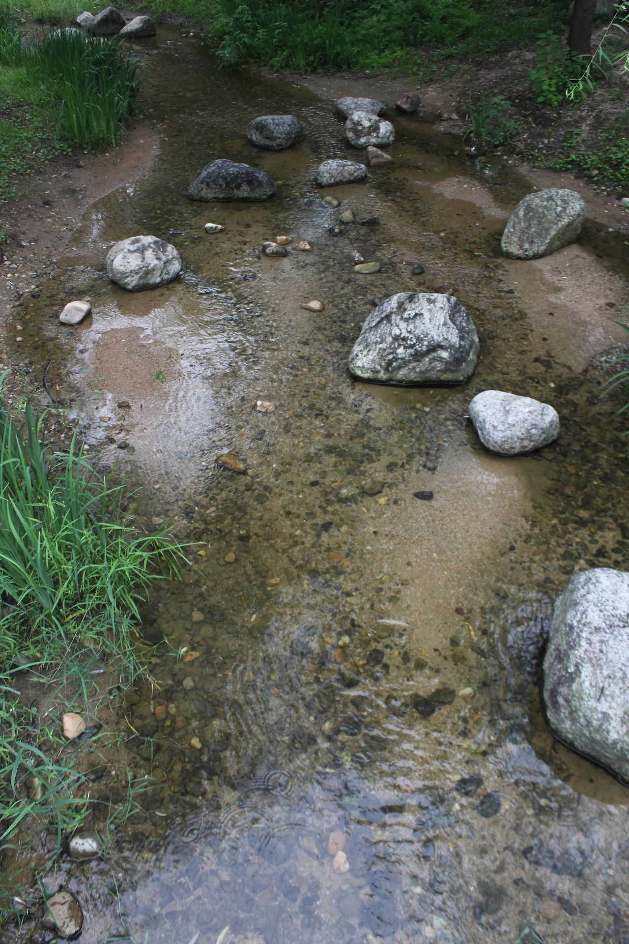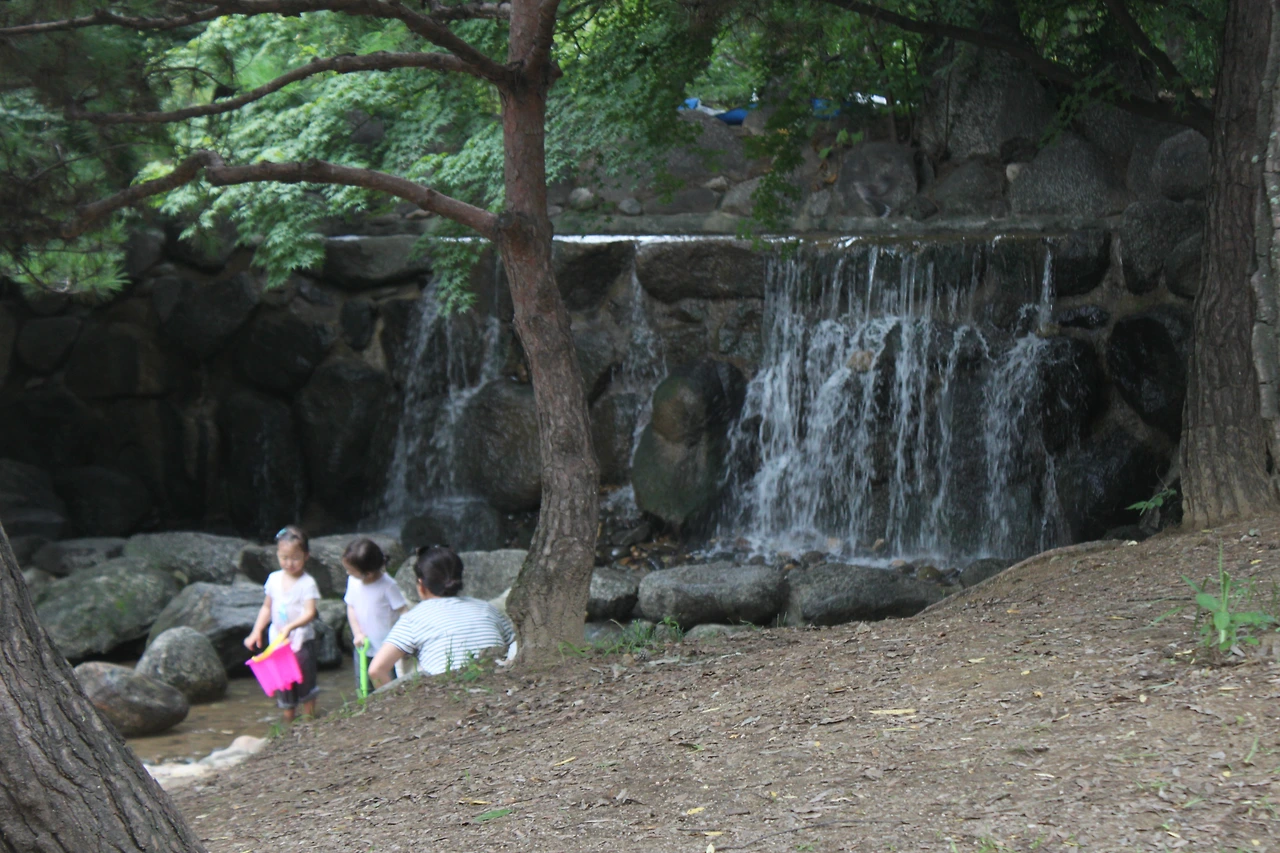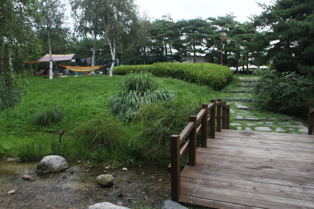 미로정원을 비롯해 다양한 정원을 살펴보다 아이들이 놀고 있는 개울을 지나 '하늘공원'으로 가는 '구름다리'를 건넌다.