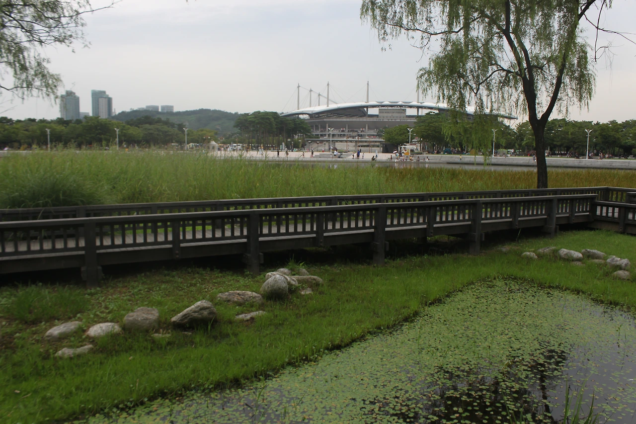 두 달이 지나도록 일요일은 비였는데 오늘 비 소식이 없어 편안한 맘으로 느지막이 몇 년 전 가보았던 월드컵 경기장 옆 '하늘공원'에 가기로 한다.