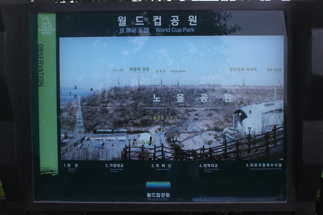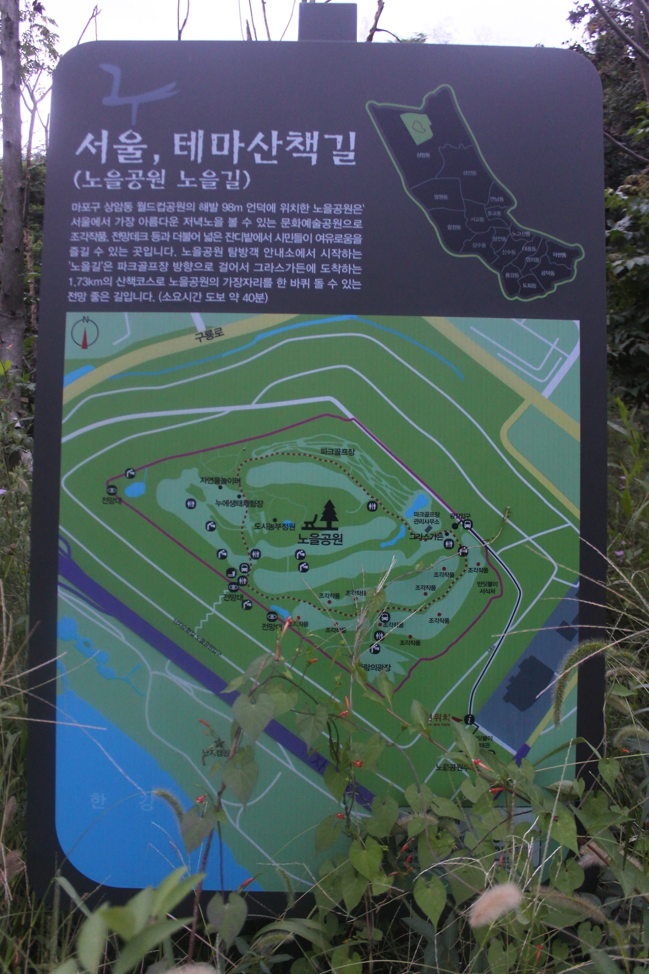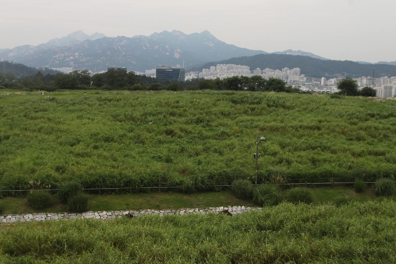 '월드컵 경기장역'에 내려 '불광천'을 따라가다 길 건너 '평화의 공원'을 따라 올라간다.