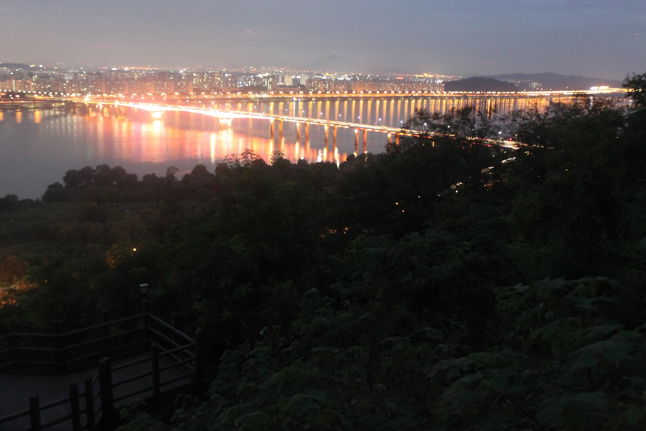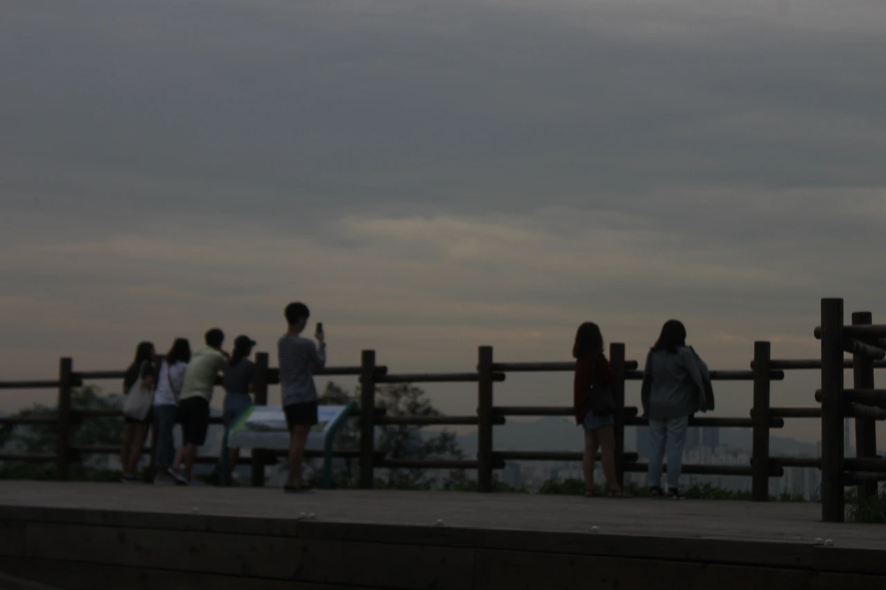 잠깐 숨을 돌린 후 길을 걷는데 어두워져도 조명이 켜지지 않아 조금 으스스하다. 전망대에 아이가 있는 한가족이 있는데 어둠 속에 서로 경계하는 것 같아 조용히 지나친다.