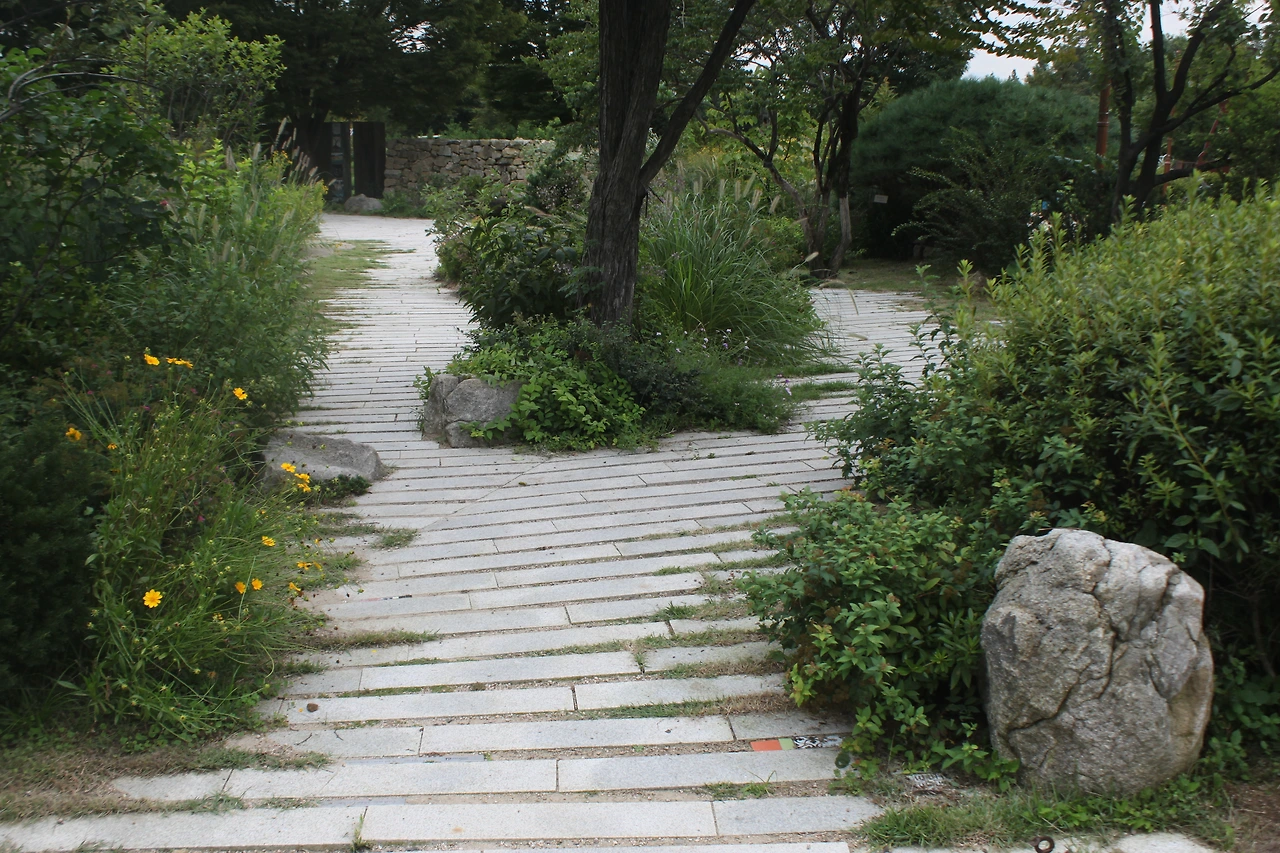 왼쪽 끝으로부터 돌아가면 데크로부터 바라보는 아름다운 수풀들이 자연스럽게 있고, 데크를 조금 더 위쪽으로 올라가면 꽃들이 하나 둘 자기만의 공간을 차지한다.
