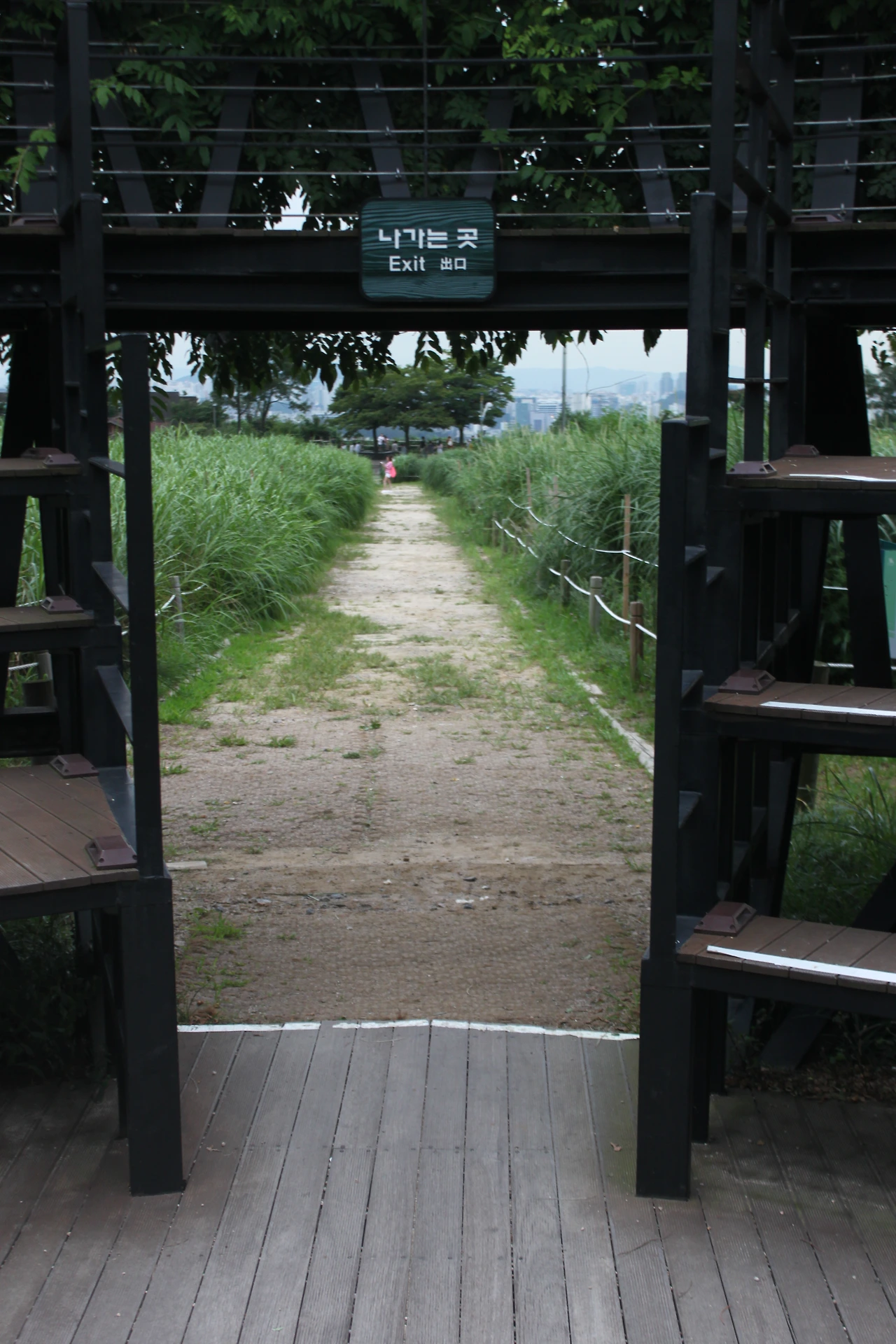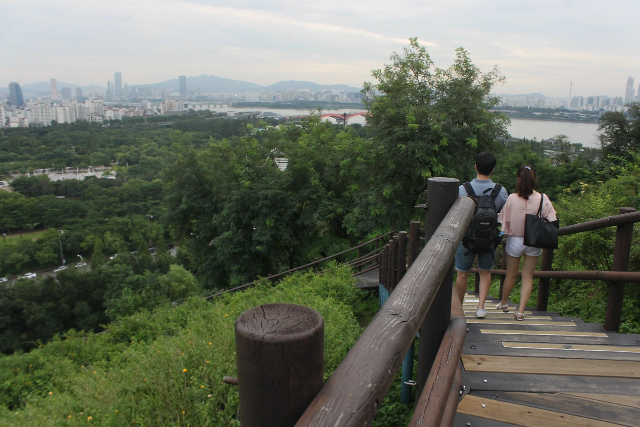 한강쪽을 따라 공원을 걷다가 '하늘공원'에서 '노을공원'으로 넘어가는 데크를 찾는다
