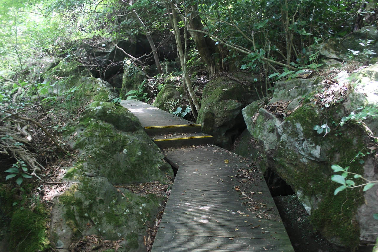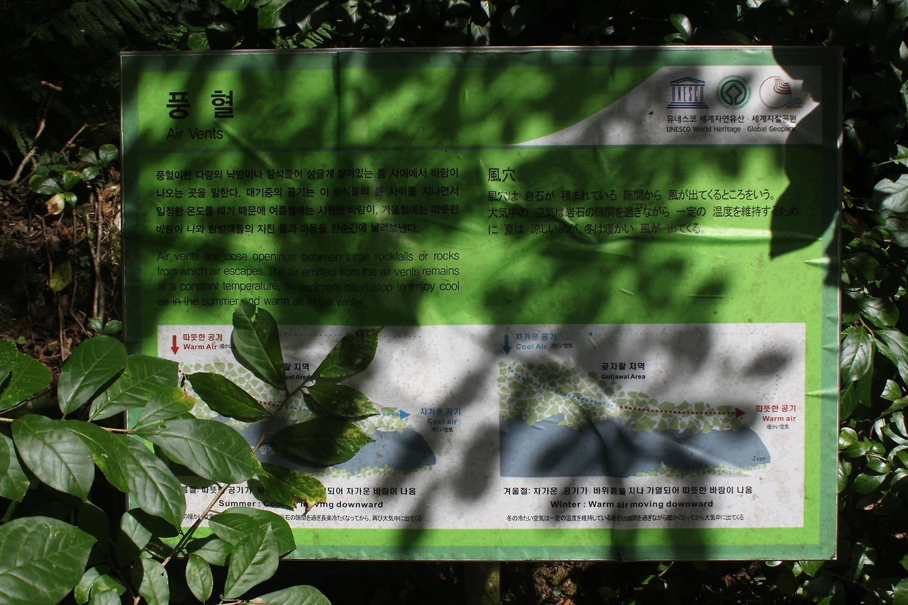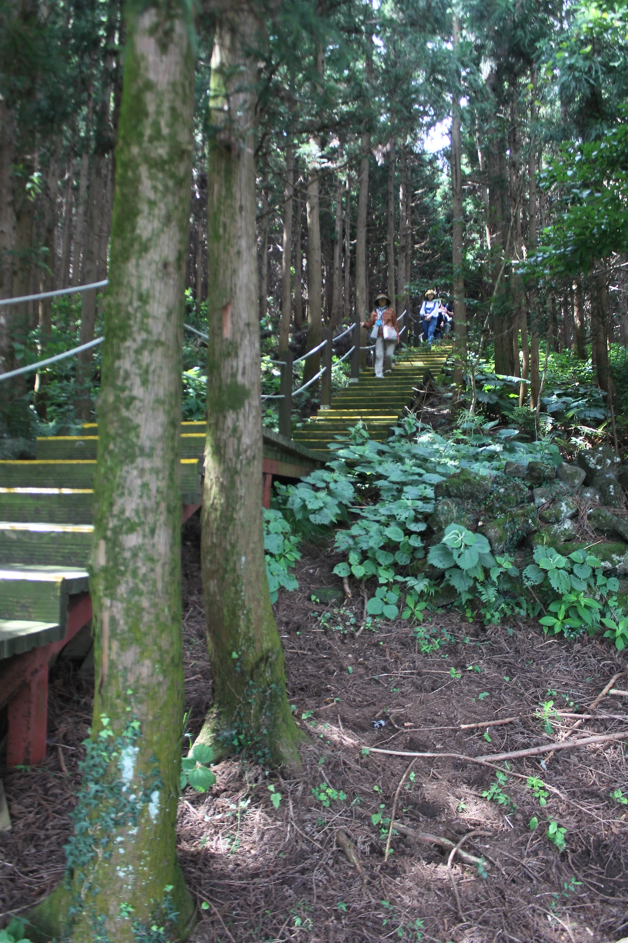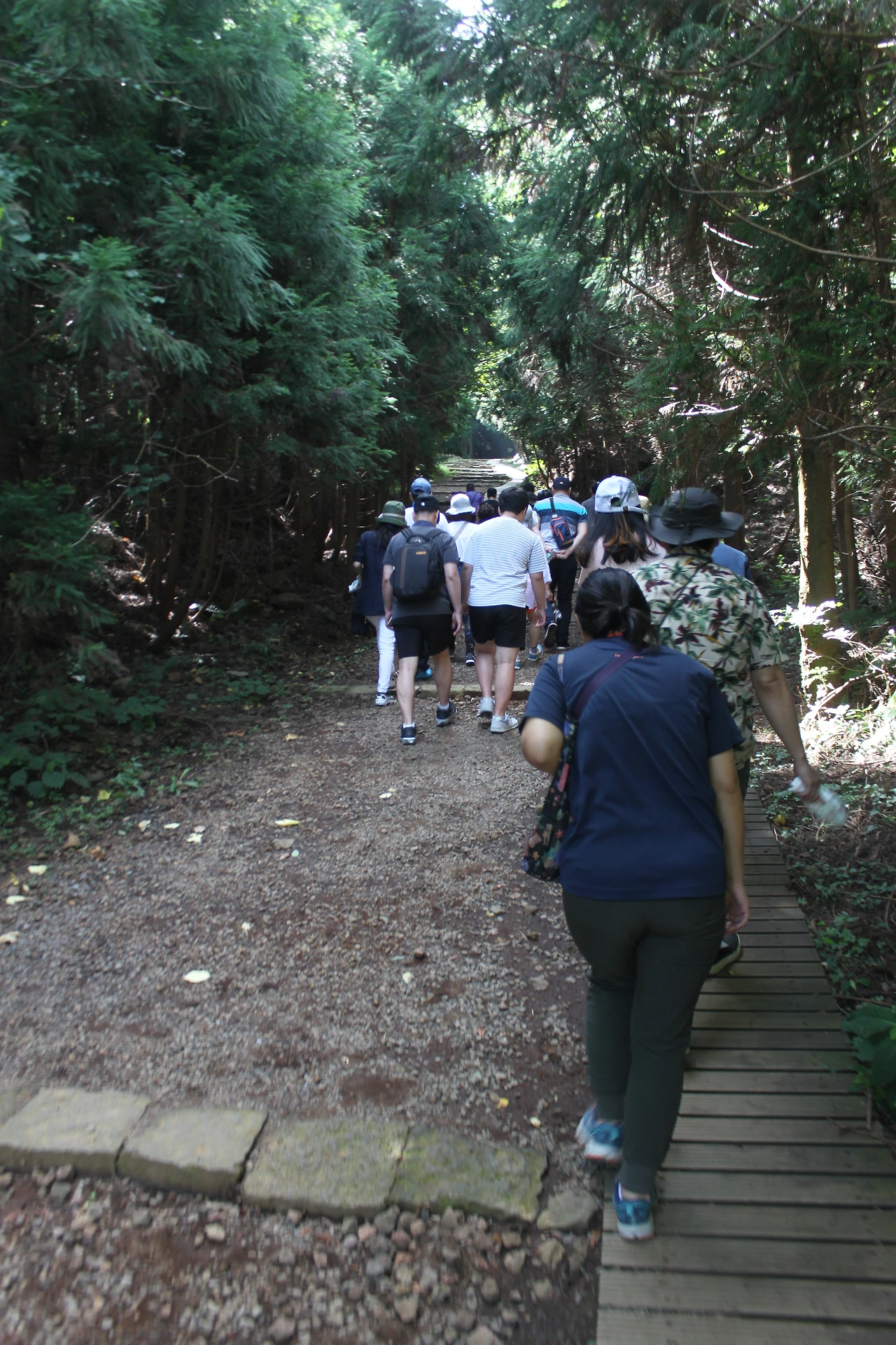 사방을 둘러보니 '삼나무'가 가득하다. '일본군 갱도 진지'를 지나'숯가마터'와 '풍혈'을 지나 오래 자란 나무들의 그리고 이끼들의 아늑함에 취해 걷다가 '수직동굴'에 이르러 깊이를 알 수 없는 공간을 보다가 천천히 내려온다.