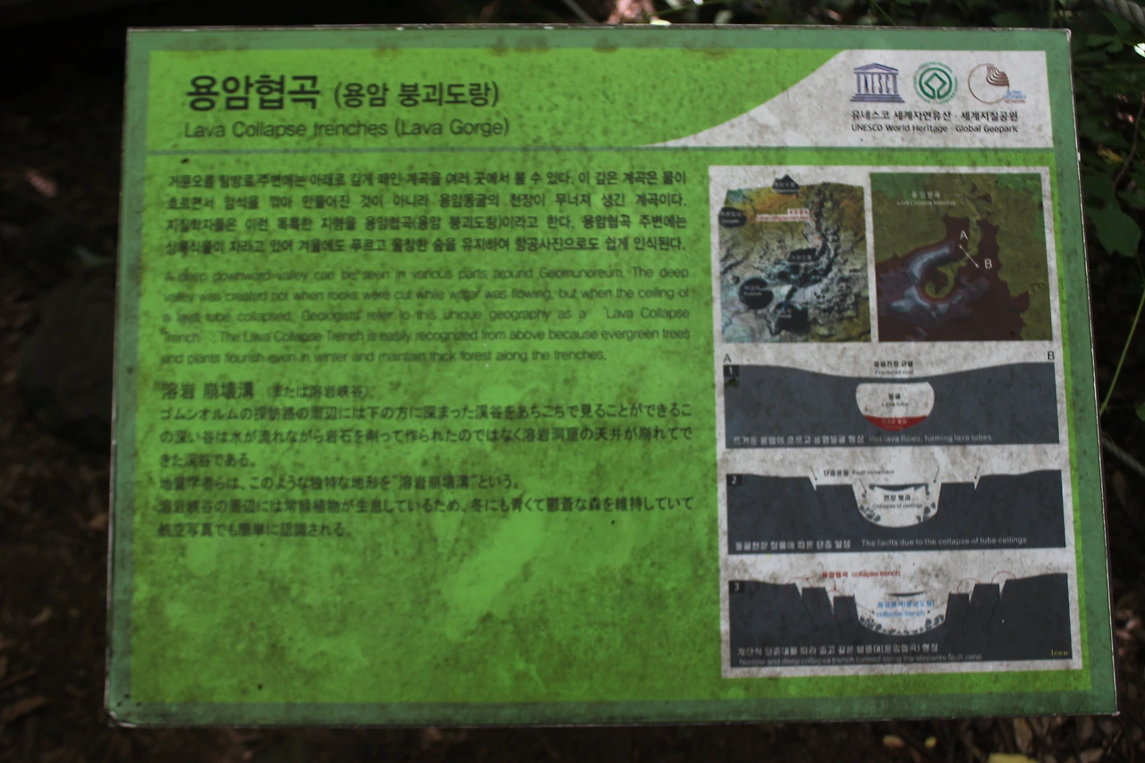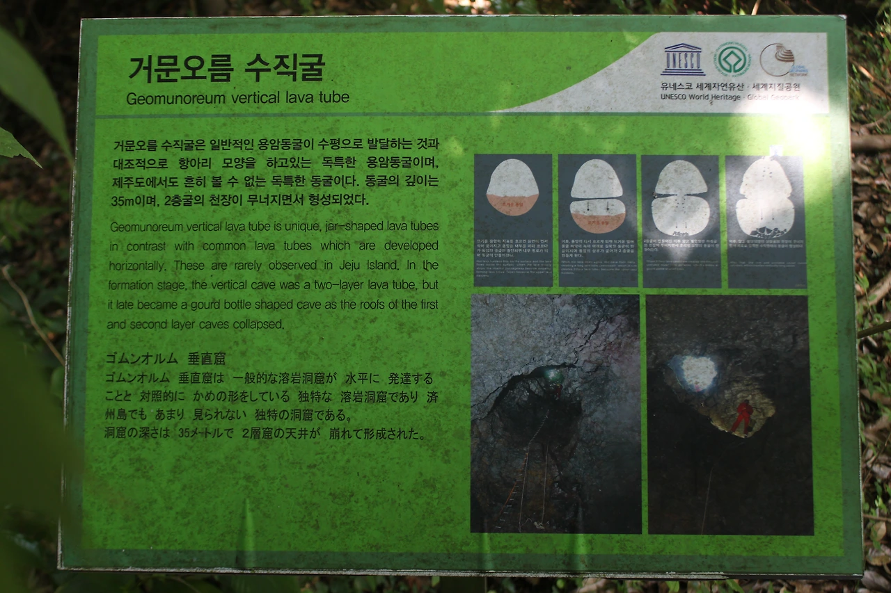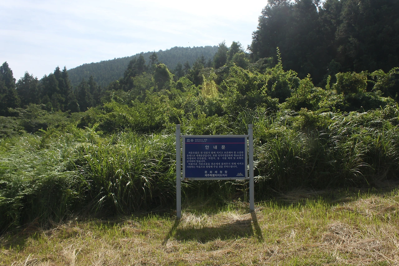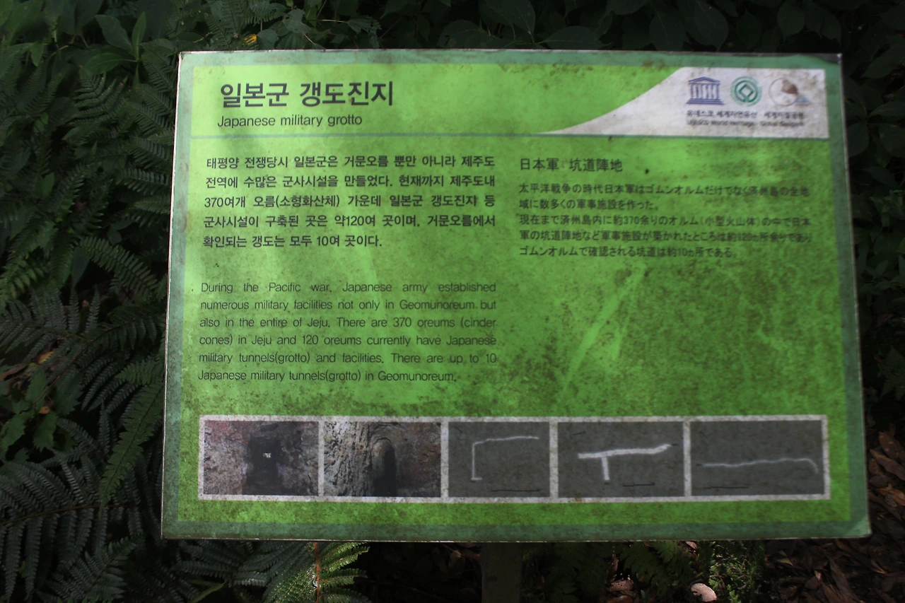 사방을 둘러보니 '삼나무'가 가득하다. '일본군 갱도 진지'를 지나'숯가마터'와 '풍혈'을 지나 오래 자란 나무들의 그리고 이끼들의 아늑함에 취해 걷다가 '수직동굴'에 이르러 깊이를 알 수 없는 공간을 보다가 천천히 내려온다.