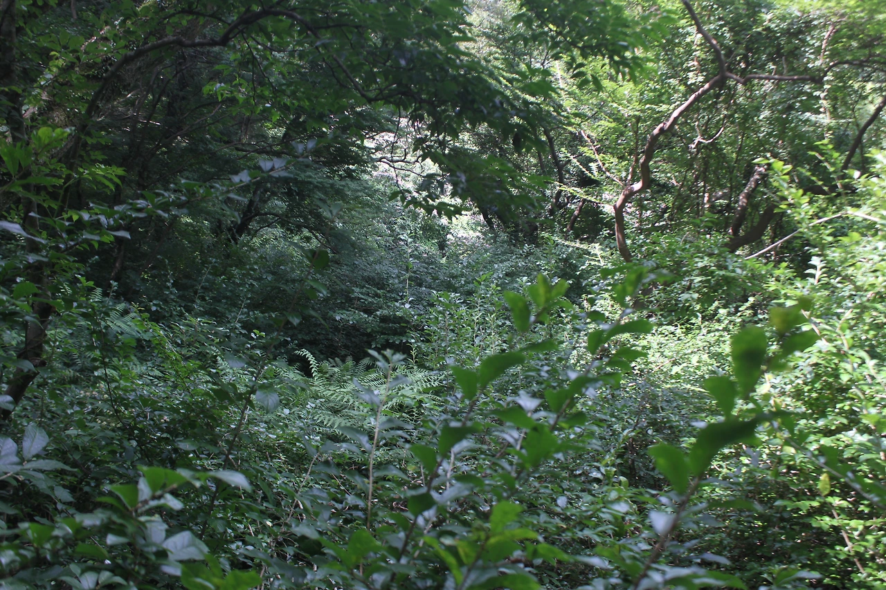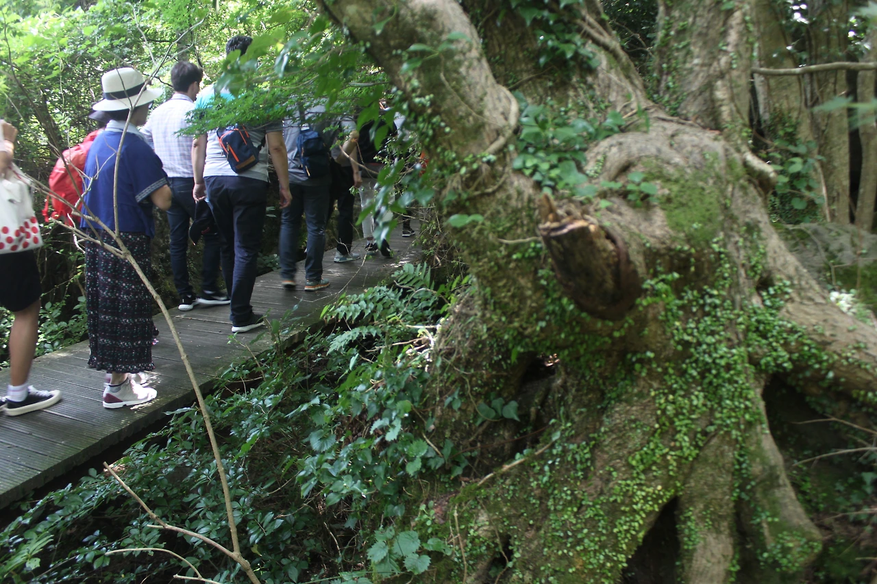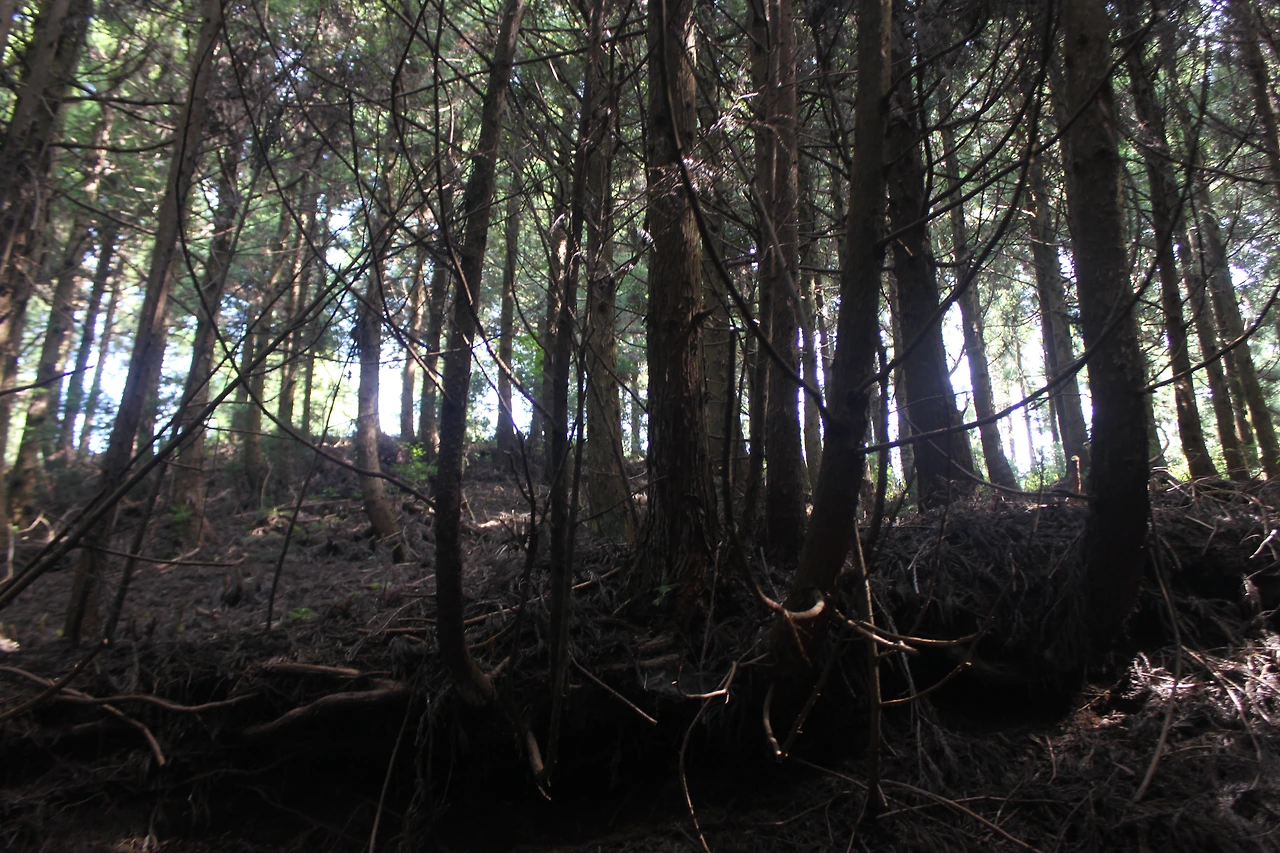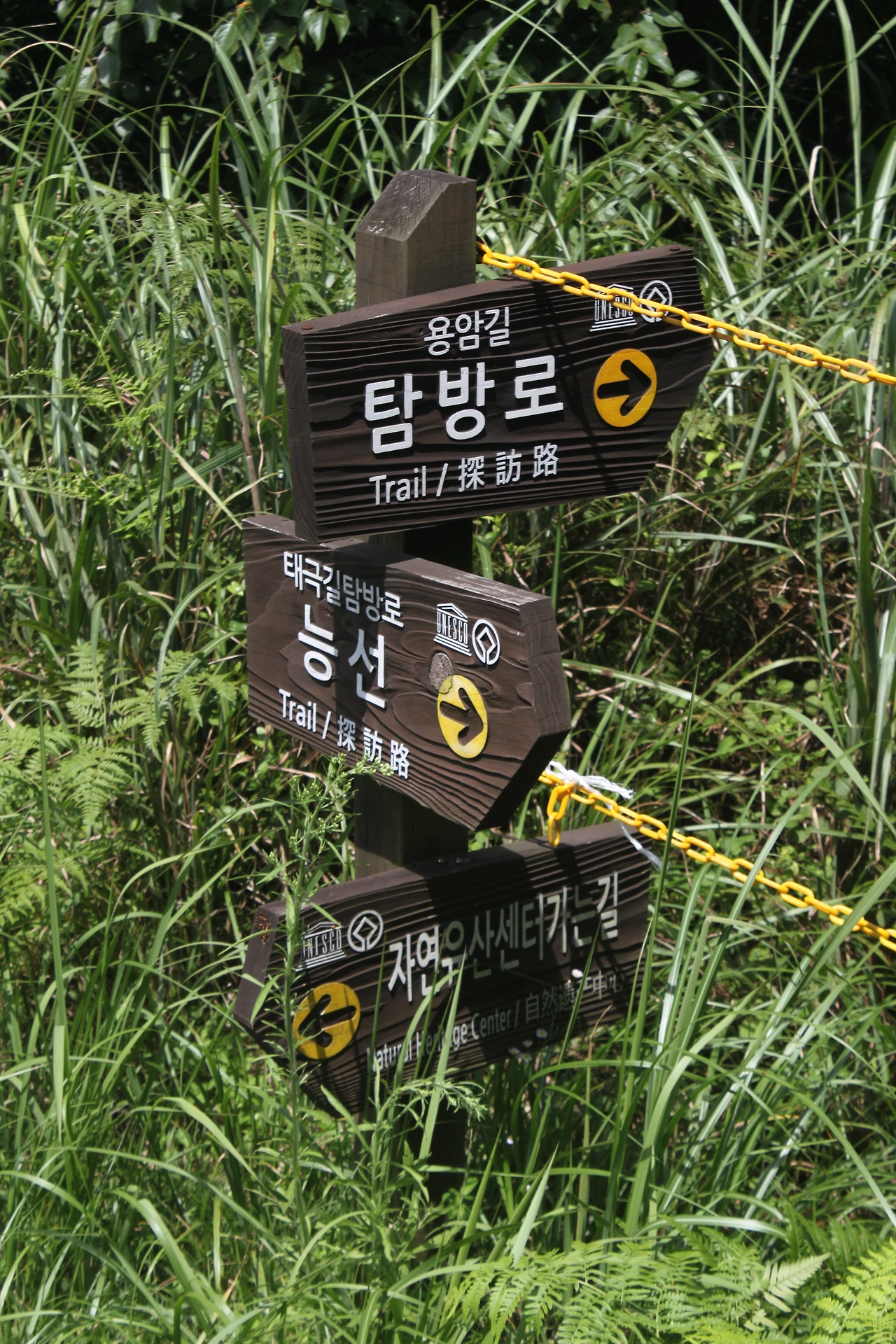 사방을 둘러보니 '삼나무'가 가득하다. '일본군 갱도 진지'를 지나'숯가마터'와 '풍혈'을 지나 오래 자란 나무들의 그리고 이끼들의 아늑함에 취해 걷다가 '수직동굴'에 이르러 깊이를 알 수 없는 공간을 보다가 천천히 내려온다.