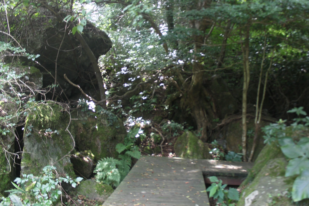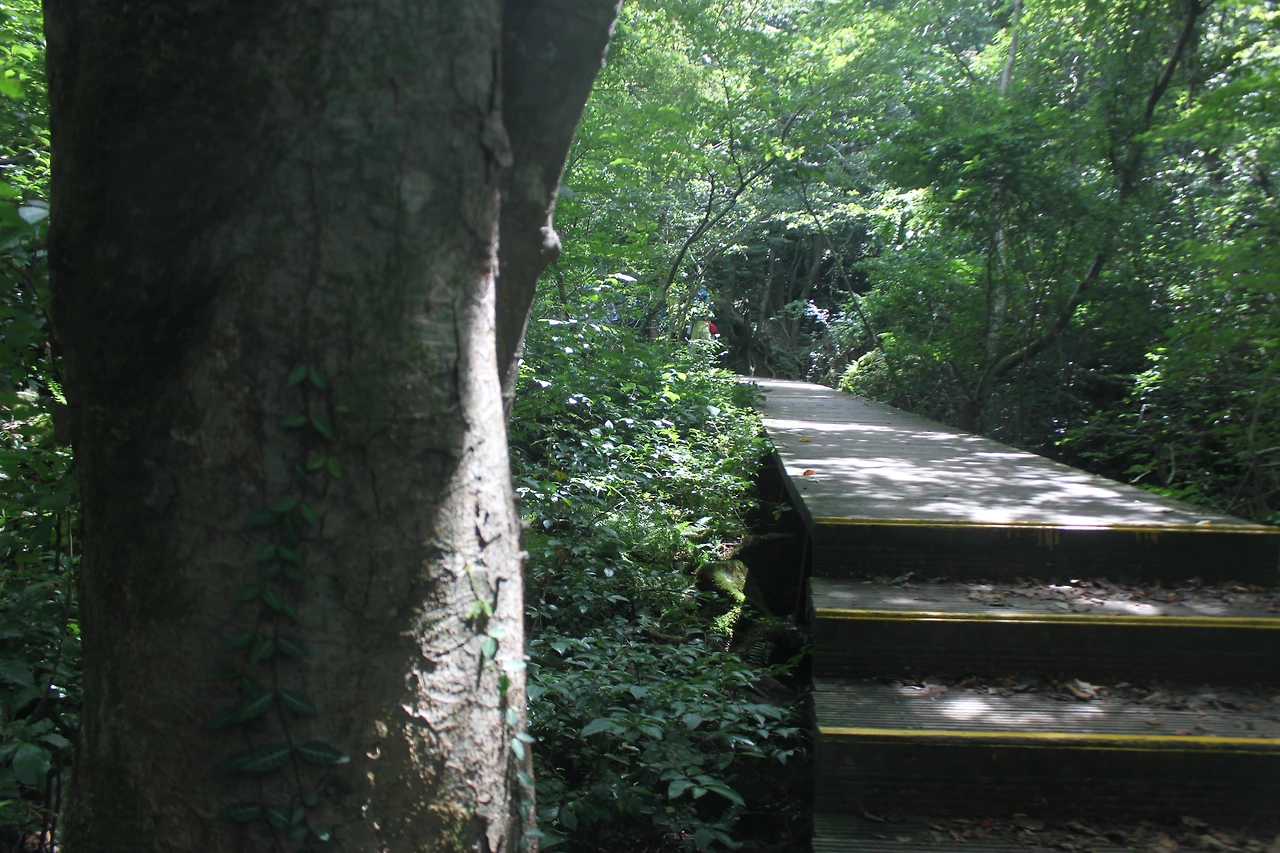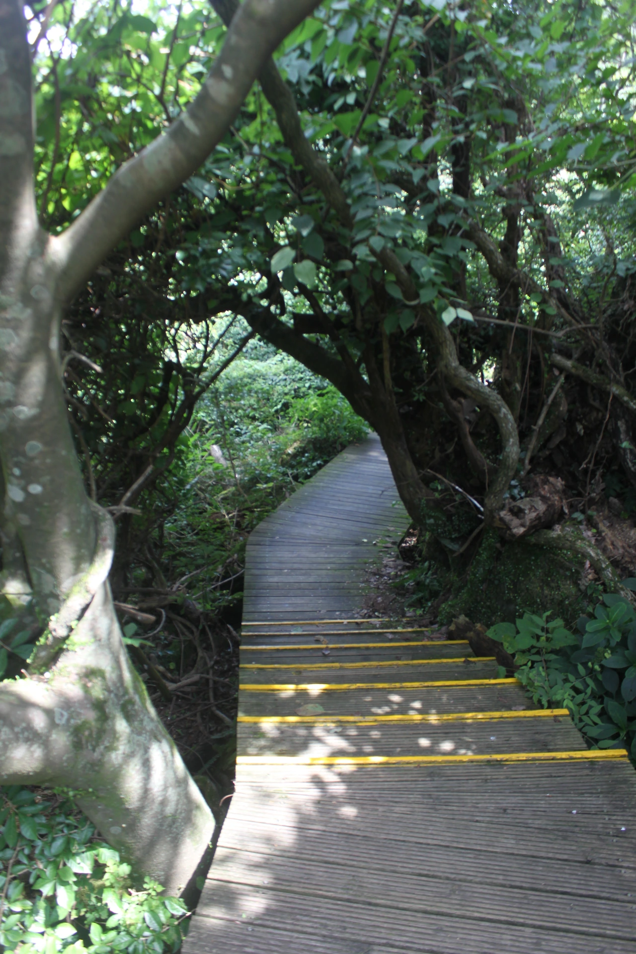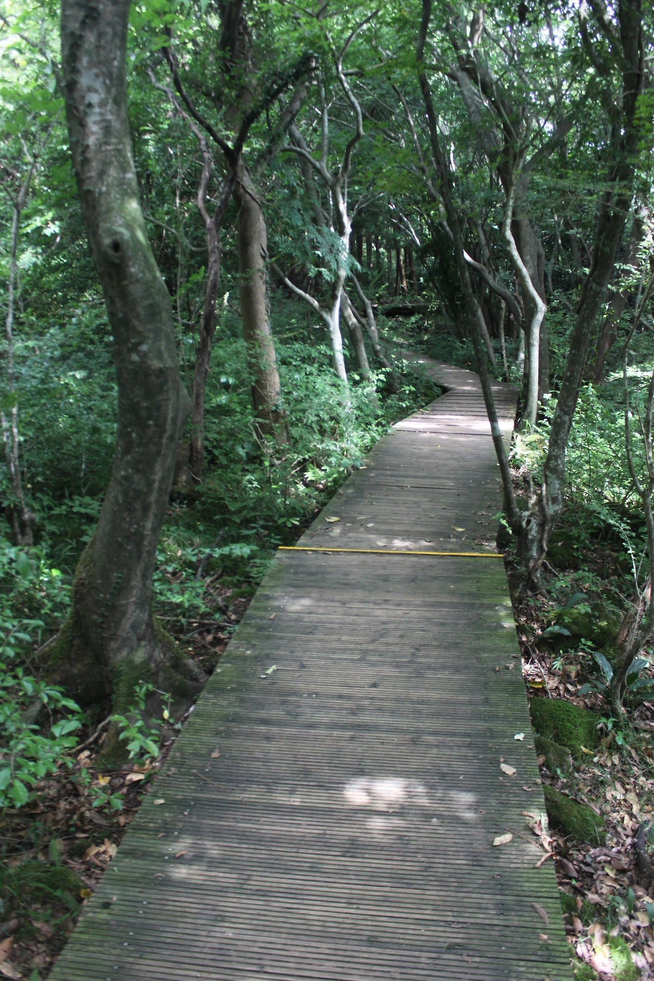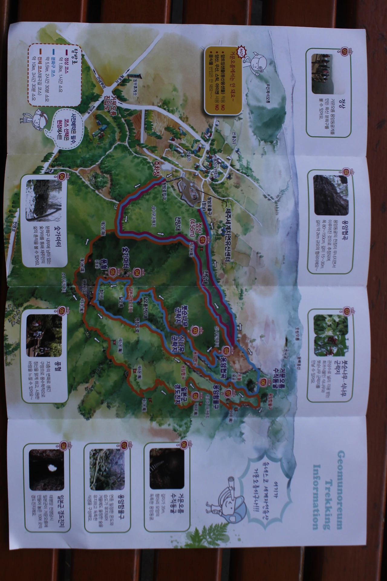 시원한 바람을 타고 정상에 오르자 오름의 봉우리 봉우리들이 한눈에 보이고, '삼나무 숲'이 눈과 호흡이 편안하게 해준다. a코스는 여기까지이고 b코스는 분화구의 안쪽 깊숙이 식물들의 자생지들을 찾아간다. '용암협곡'을 지나 '식나무 붓순나무 군락지'를 지나 '곶자왈'을 지난다. '곶'은 숲, '자왈'은 바위나 자갈을 의미한다고 한다.
