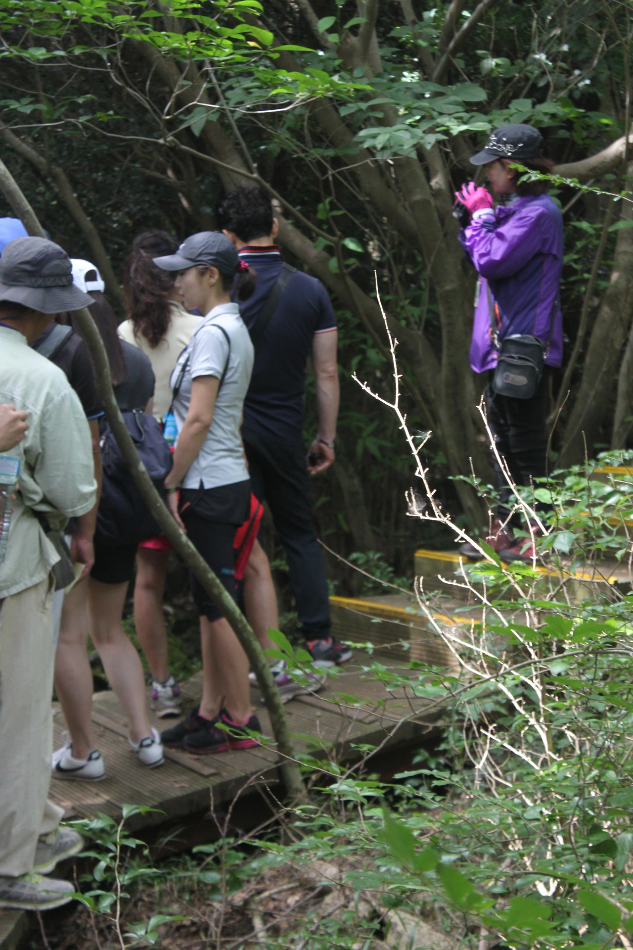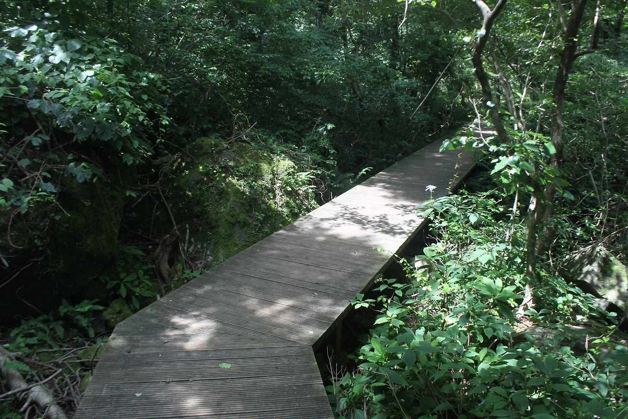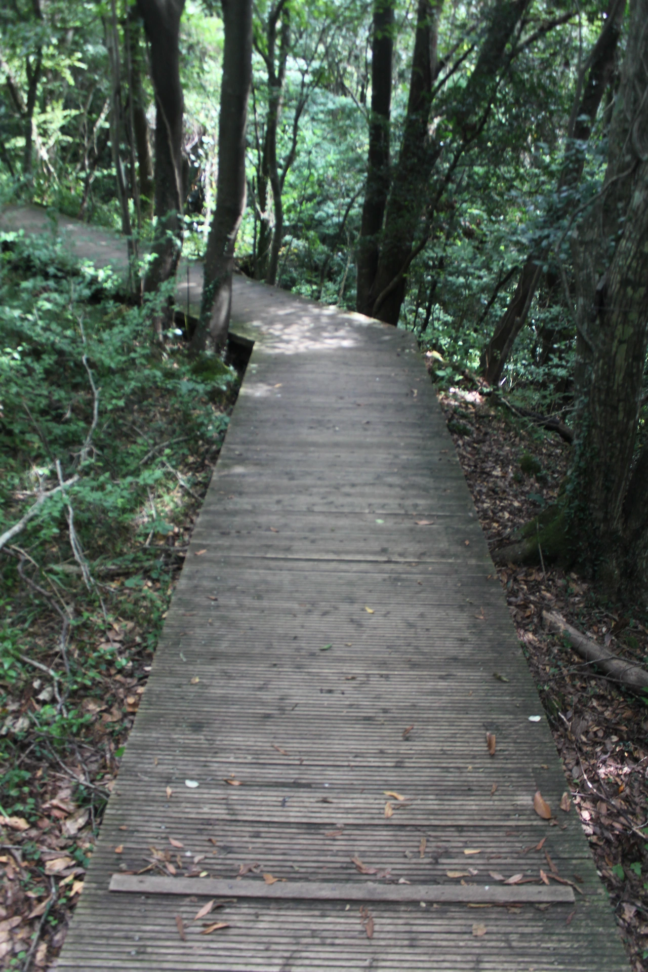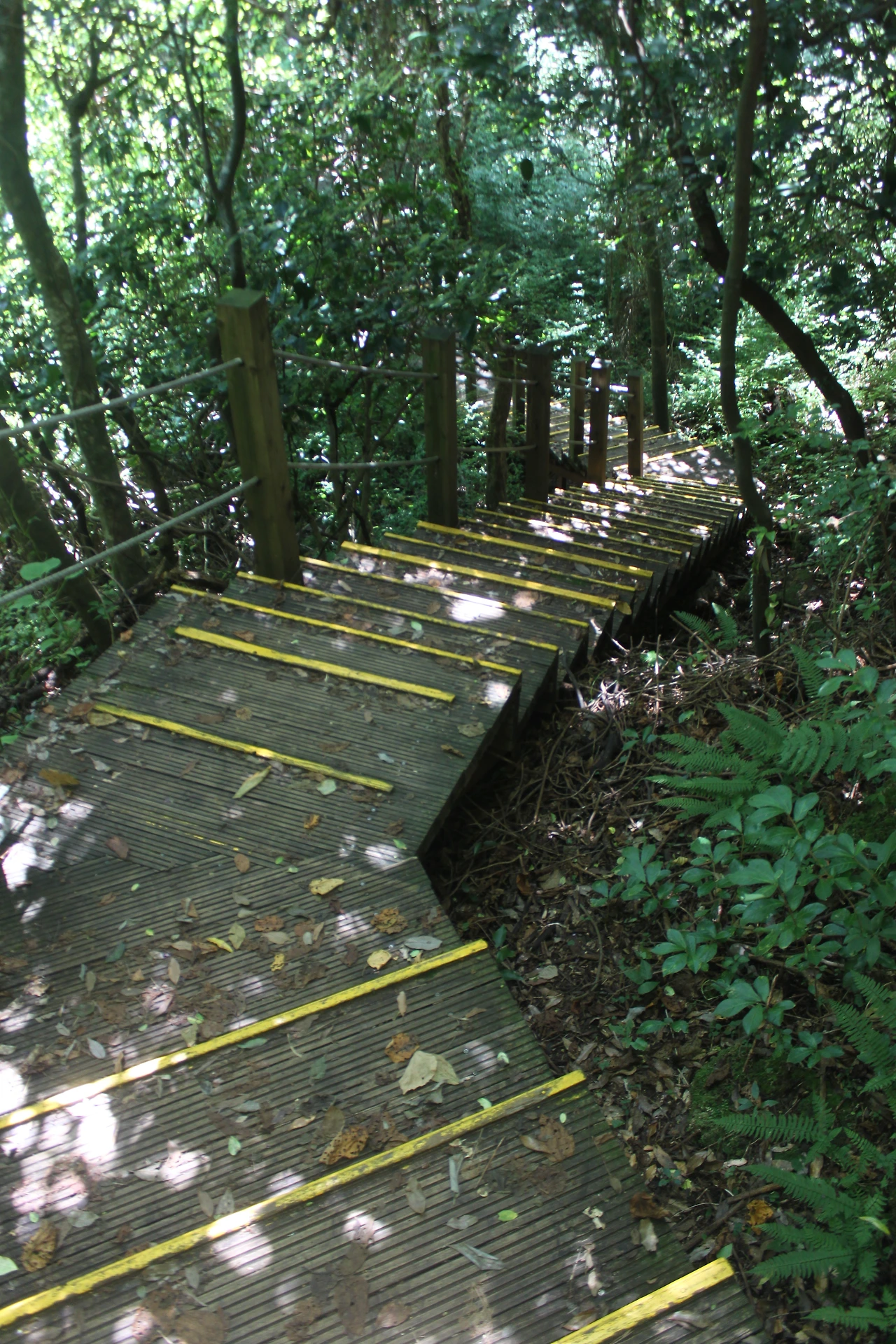 시원한 바람을 타고 정상에 오르자 오름의 봉우리 봉우리들이 한눈에 보이고, '삼나무 숲'이 눈과 호흡이 편안하게 해준다. a코스는 여기까지이고 b코스는 분화구의 안쪽 깊숙이 식물들의 자생지들을 찾아간다. '용암협곡'을 지나 '식나무 붓순나무 군락지'를 지나 '곶자왈'을 지난다. '곶'은 숲, '자왈'은 바위나 자갈을 의미한다고 한다.