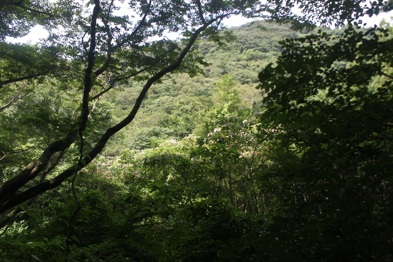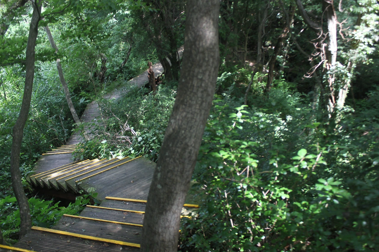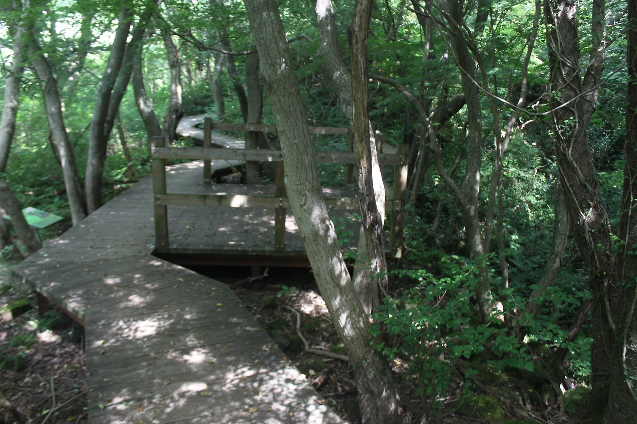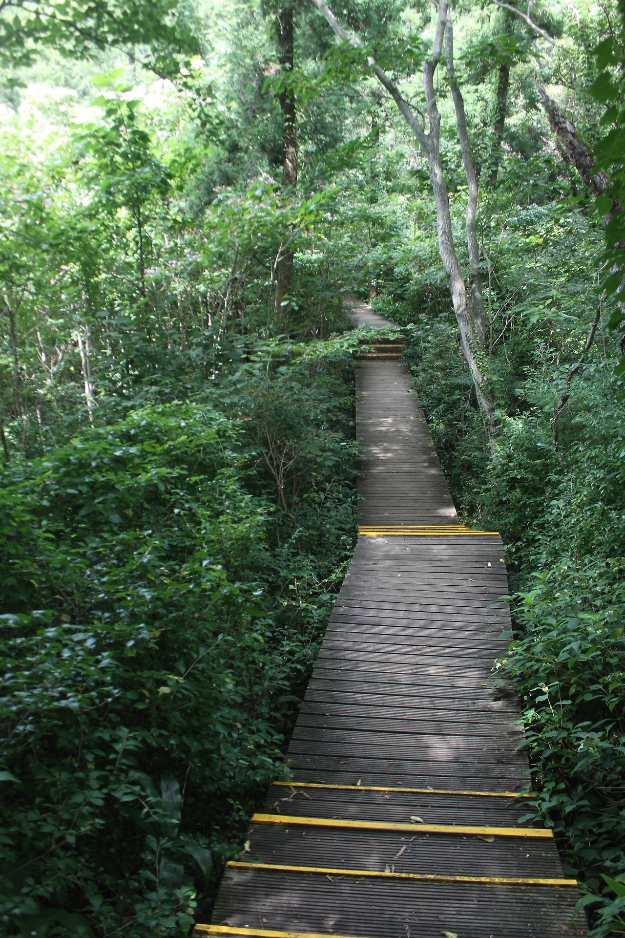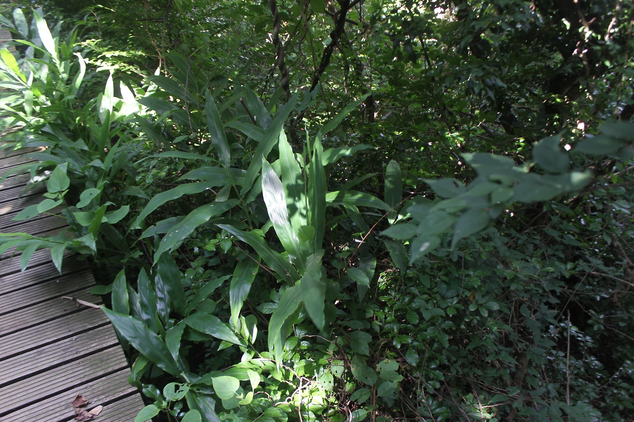 시원한 바람을 타고 정상에 오르자 오름의 봉우리 봉우리들이 한눈에 보이고, '삼나무 숲'이 눈과 호흡이 편안하게 해준다. a코스는 여기까지이고 b코스는 분화구의 안쪽 깊숙이 식물들의 자생지들을 찾아간다. '용암협곡'을 지나 '식나무 붓순나무 군락지'를 지나 '곶자왈'을 지난다. '곶'은 숲, '자왈'은 바위나 자갈을 의미한다고 한다.