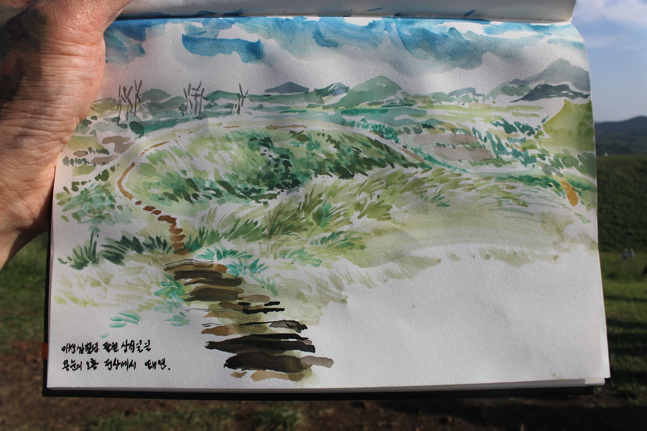 위쪽엔 탐방을 빡빡하게 진행해서 스케치할 시간을 확보하지 못했으나 내려와서는 여유가 있어 스케치를 한다. 오름마다의 특색이 있겠지만 거문오름은 조금 더 우거지고 다양함과 아기자기함을 가진 큰 신비한 오름임에는 틀림없다.