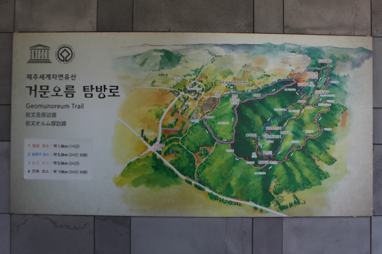 버스가 30여 분 만에 오나 급행은 시간 맞춰 타면 빠르겠다는 생각을 한다. '거문오름 입구'에 내려 10여분 걸으면 10만 년 전 화산활동으로 생긴 '거문오름'과 '제주세계자연유산센터'가 나타난다.