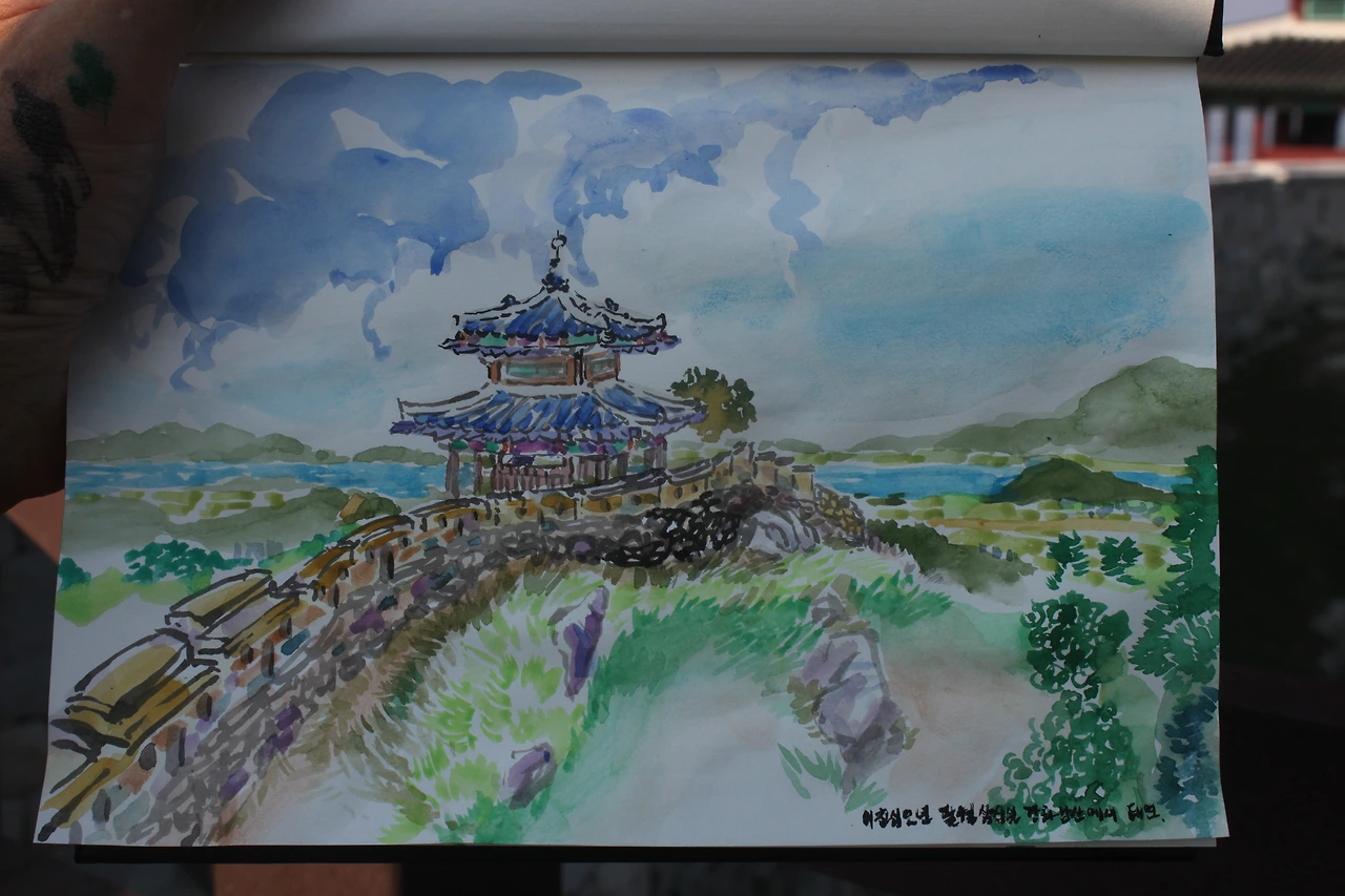 조용히 자리를 잡아 스케치를 한 장 끝내고,