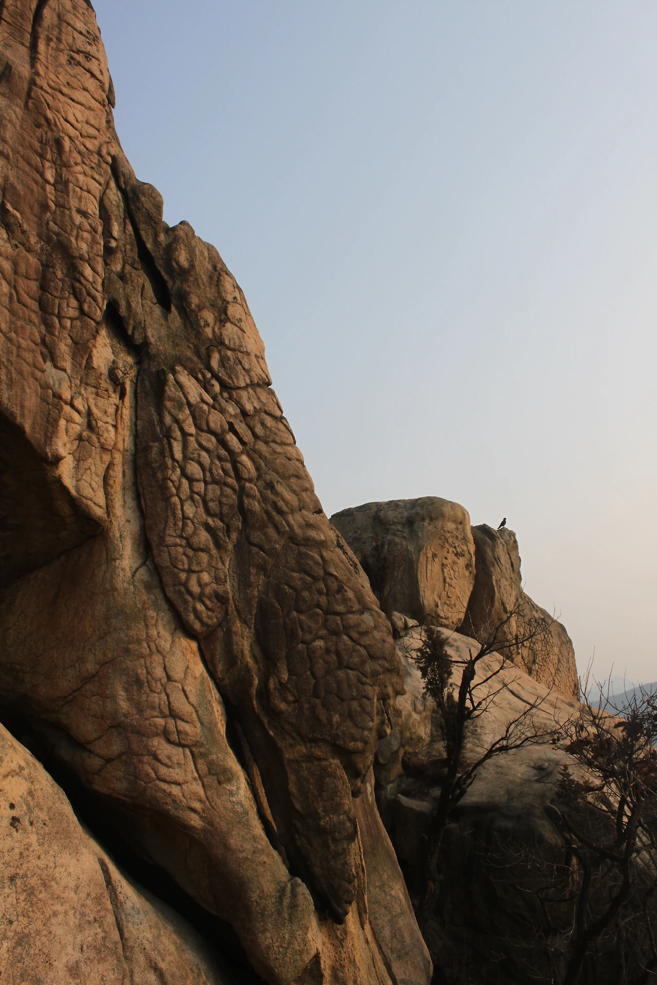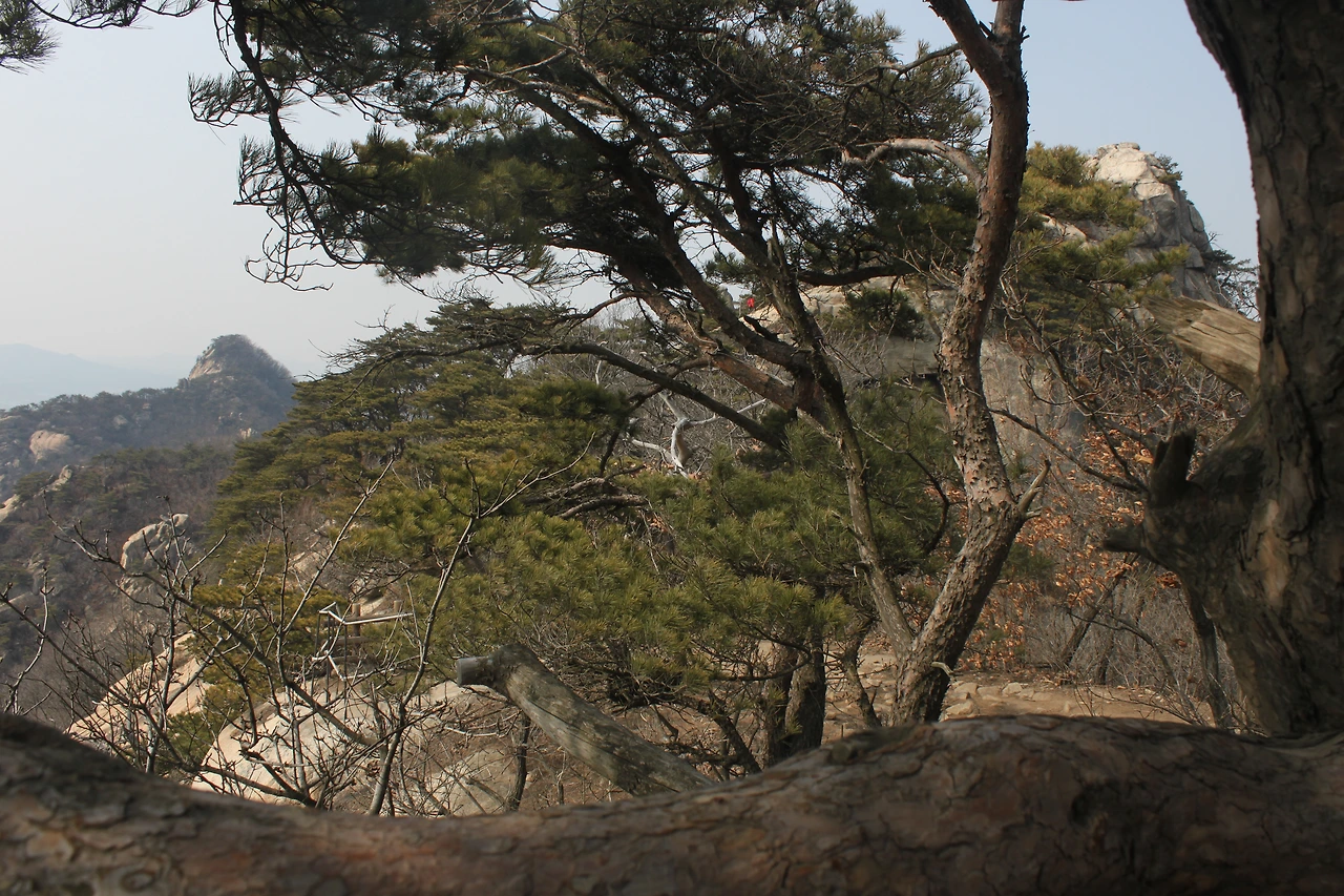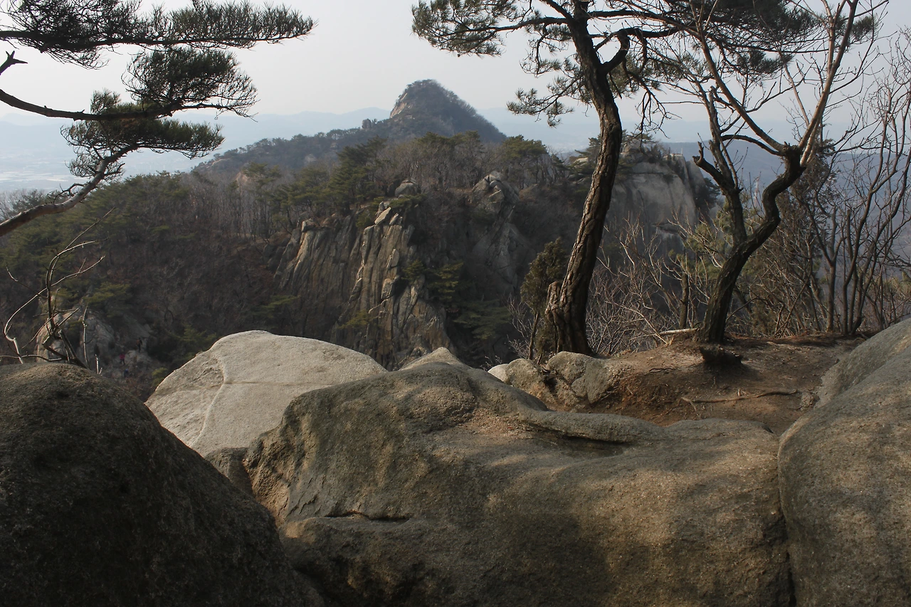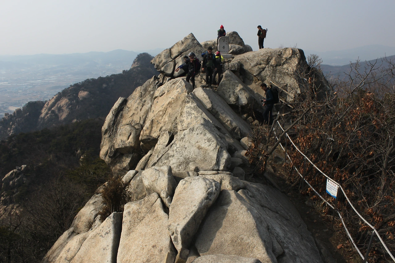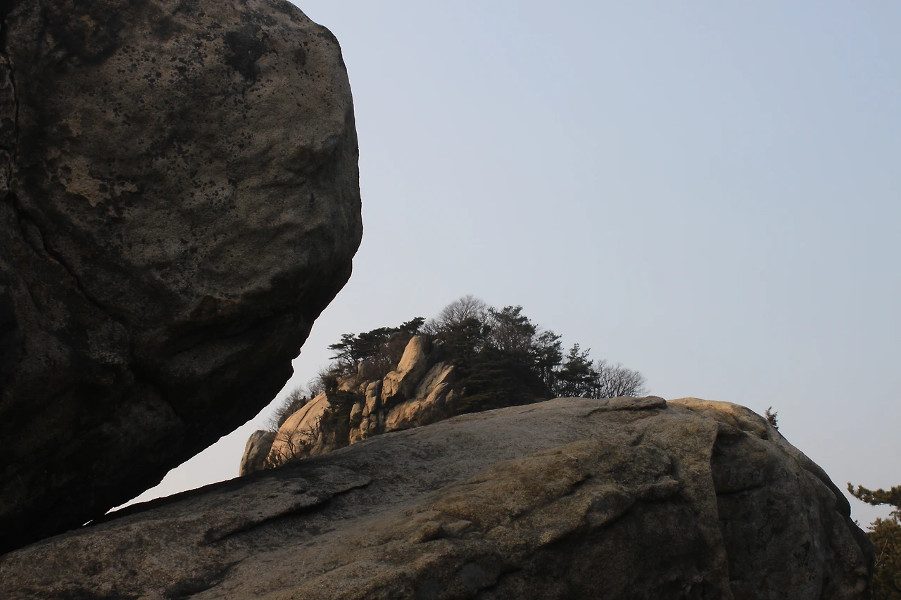 불곡산을 오르는데 포항에서 원정 산행 온 분들이 사투리를 시원하게 구사하신다. 포항에서 올 정도면 무언가 대단한 경관들이 숨어 있나? 기대감을 증폭시켜주고... 오르고 오른 불곡산은 기다란 보루로 조금 지루할 수도 있는 길을 30분 정도 오르게 했다.. 그러다가 여름에는 안보였을 아직 나무들만 있기에 보이는 아름다운 기암 괴석의 모습을 보고 길 아닌 가파른 산 벼랑 길을 따라 풍경을 살펴보았다.